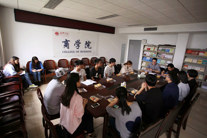 为进一步做好教学工作,加强师生互动, 4月20日,市场营销系在教一604召开学生代表座谈会。市场营销系钱大可、翁胜斌、方芳三位教师作为教师代表和14、15、16三个年级的同学代表座谈。