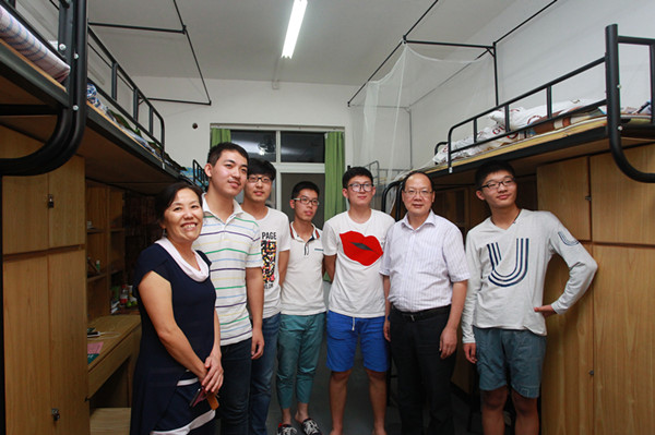 2015年9月17日,新生报到日当晚,校党委书记黄文秀走访宿舍看望吃瓜网 2015级新生,校办负责人、吃瓜网 党政领导随同走访。