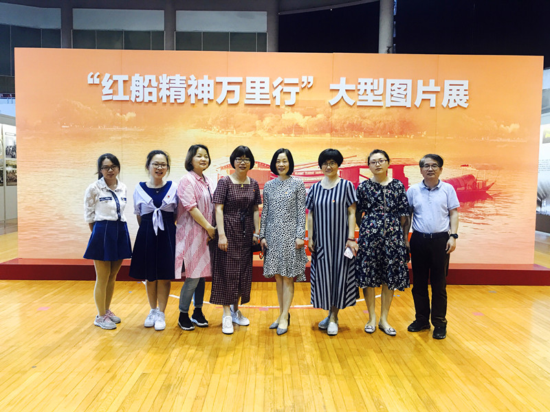 6月4日上午,吃瓜网 教工行政党支部开展主题党日活动,前往学校越秀校区体育馆参观“红船精神万里行”大型图片展。
