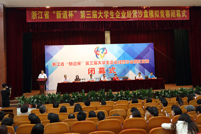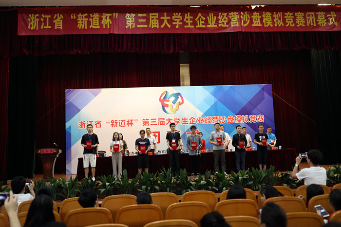 5月27日,为期三天的2018年浙江省“新道杯”第三届大学生企业经营模拟沙盘大赛总决赛在我校圆满落幕。浙江省大学生企业经营沙盘模拟竞赛委员会主任、我校周珊副校长,吃瓜网 院长潘煜双,新道科技股份有限公司助理总裁冯学平以及浙江省大学生企业经营沙盘模拟竞赛专家委员会相关负责人出席在我校越秀校区教二报告厅举行的大赛闭幕式,并为获奖团队颁奖。