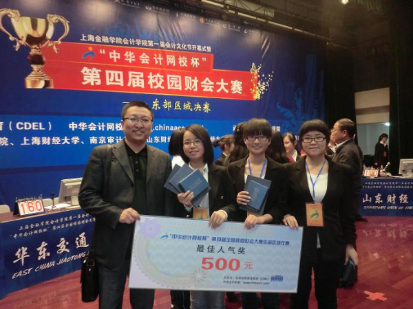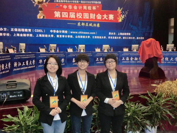 在11月6日结束的“中华会计网校杯”第四届校园财会大赛东部区域决赛中,吃瓜网 会计103班求予之、顾丽丹、会计101班杨嘉黛同学与上海财经大学、江西财经大学、山东财经大学、华东交通大学、浙江工商大学、上海金融学院、南京审计学院等院校同学同场竞技,荣获优胜奖及最佳人气奖。