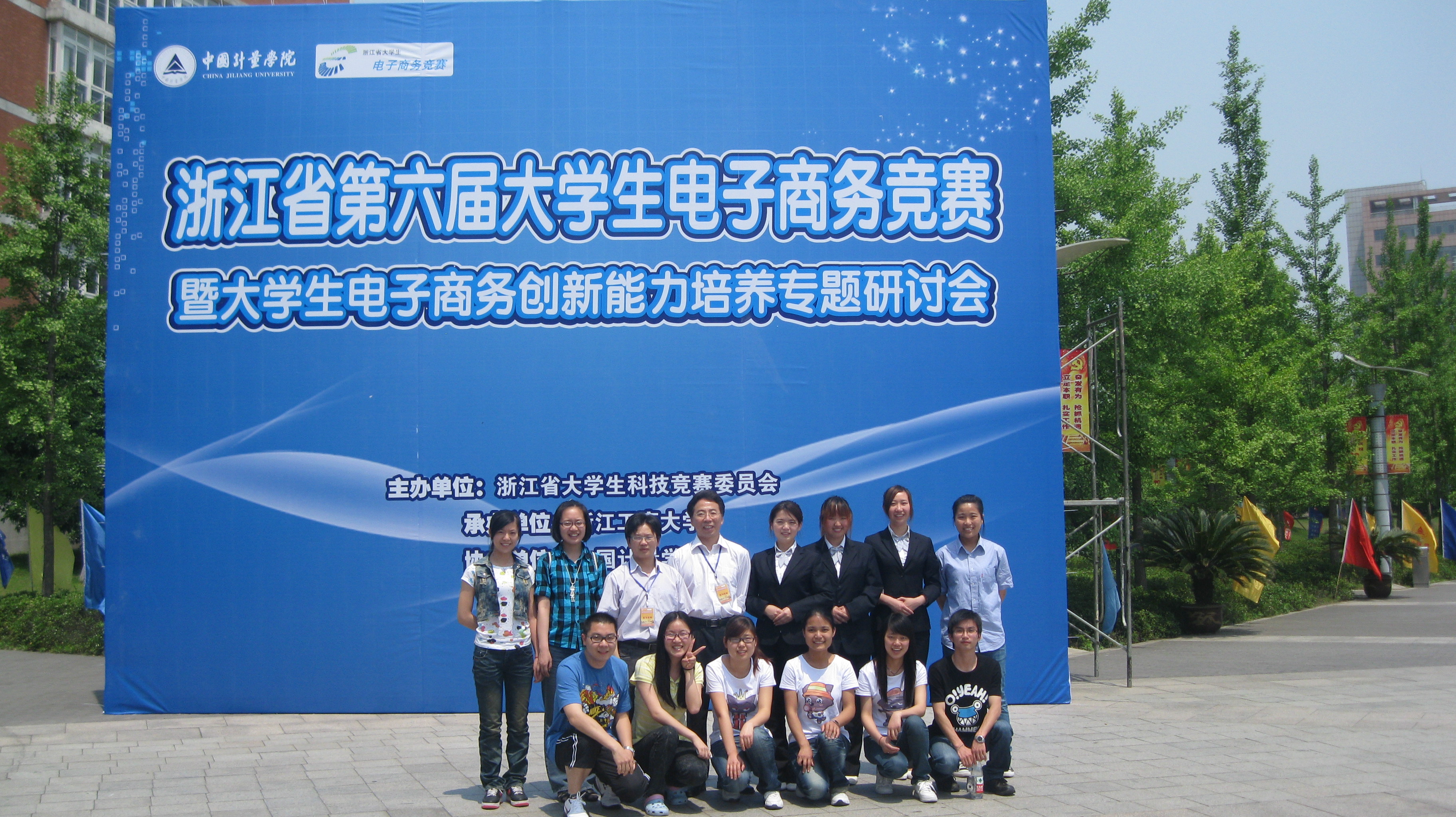 浙江省第六届大学生电子商务竞赛全省共有75所高校(含独立学院)的475件作品报名参赛。经过双向匿名的网评,共有114件作品入围现场演示、答辩阶段的比赛,现场比赛于 2011年 5月 14日 至15日在中国计量学院举行。我校共有18支队伍参赛,其中5支队伍入围决赛,最终共获得3项二等奖,8项三等奖的优秀成绩。