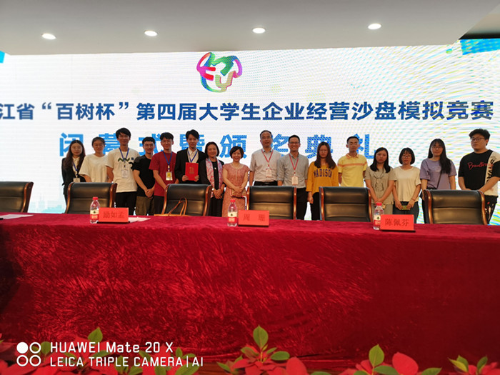 5月24-26日,由浙江省教育厅、浙江省大学生科技竞赛委员会主办,我校作为赛项秘书单位的浙江省“百树杯”第四届大学生企业经营沙盘模拟竞赛(本科组)决赛在浙江财经大学成功举行。本次本科组决赛共有省内48所高校的183支队伍参赛,贵州吃瓜网 作为省外特邀高校派出2支队伍参赛。承办单位浙江财经大学副校长励如孟、竞赛秘书处单位嘉兴学院副校长周珊、下届承办单位浙江万里学院副校长马建荣、浙江省大学生科技竞赛委员会竞赛巡视员陈佩芬和竞赛专家委员会副主任潘煜双等出席闭幕式暨颁奖典礼。