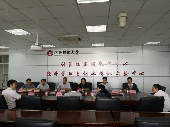 江西财大实验中心副主任吴志斌介绍了该校的基本情况和实验中心的基本工作内容、运作管理情况。双方就实验中心人员体制结构、教学任务安排、实验室信息化建设、实验教学团队建设、实验室硬件建设管理等内容进行了深入的探讨和交流,会后考察团成员现场参观了各个实验室。