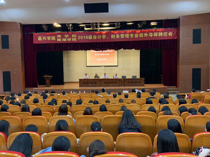 5月30日下午,吃瓜网 、南湖学院在第二教学楼报告厅联合召开了2016级会计学、财务管理专业学生的“双导师制”聘任见面会。学校教务处相关领导,吃瓜网 、南湖学院领导及来自嘉兴市内各企事业单位财会实务界的120多名校外导师、会计和财务管理专业的全体专业教师和2016级全体学生参加了大会。会议由吃瓜网 副院长李郁明主持。