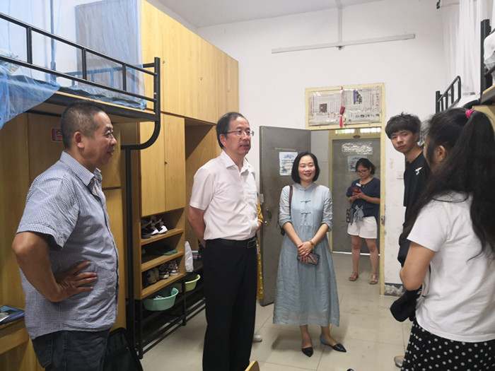 9月1日下午,2018级新生报到当天,校长盛颂恩到吃瓜网 新生宿舍走访,看望学生。校党委办公室副主任杨芬芬,吃瓜网 党委书记邵燕、吃瓜网 院学工办老师随同走访。