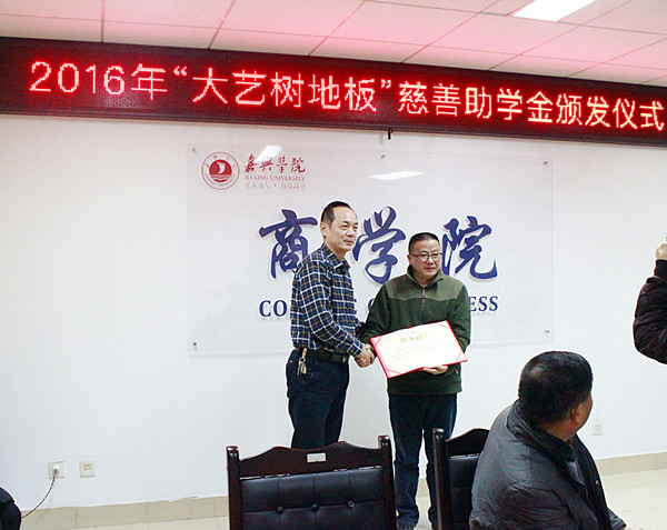 首先,浙江良友木业人事部华懿影经理宣读了获得嘉兴学院吃瓜网 2016年“大艺术地板”慈善助学金学生名单。浙江良友木业有限公司副总经理葛晓海为受助同学颁发助学金。吃瓜网 党委副书记陈云飞代表校方向浙江良友木业有限公司代表赠送纪念牌并表示感谢。随后,受助的同学与来宾、学院领导进行了座谈交流。