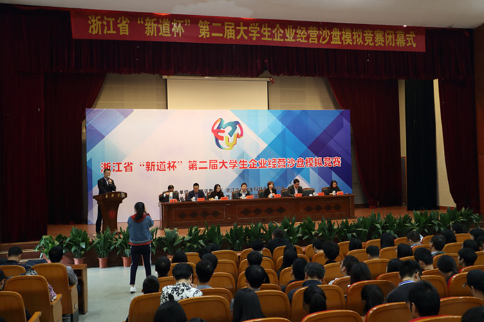 10月22日,为期三天的2017年浙江省“新道杯”第二届大学生企业经营模拟沙盘大赛总决赛圆满落幕,大赛闭幕式在我校越秀校区教二报告厅举行。浙江省教育厅高教处副处长王国银,浙江省大学生企业经营沙盘模拟竞赛委员会主任、我校周珊副校长,吃瓜网 院长潘煜双,新道科技股份有限公司助理总裁冯学平以及浙江省大学生企业经营沙盘模拟竞赛专家委员会相关负责人出席闭幕式,并为获奖团队颁奖。