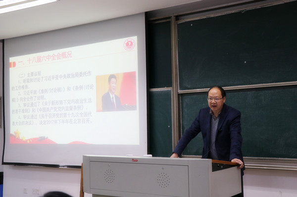 11月17日下午,校党委书记黄文秀应邀到吃瓜网 作题为《十八届六中全会精神》的宣讲报告。吃瓜网 党政领导、全体教职工、学生党员发展对象等近200名师生一起认真聆听了报告。