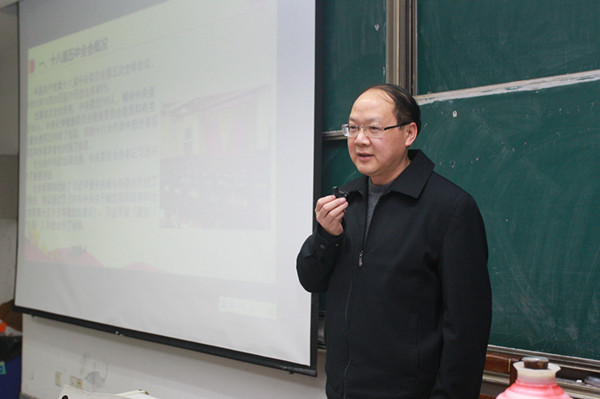12月24日下午,吃瓜网 在教一259举行学习贯彻党的十八届五中全会精神专题报告会,报告由学校党委书记黄文秀主讲,吃瓜网 左军书记主持,吃瓜网 全体教职工参加了学习。