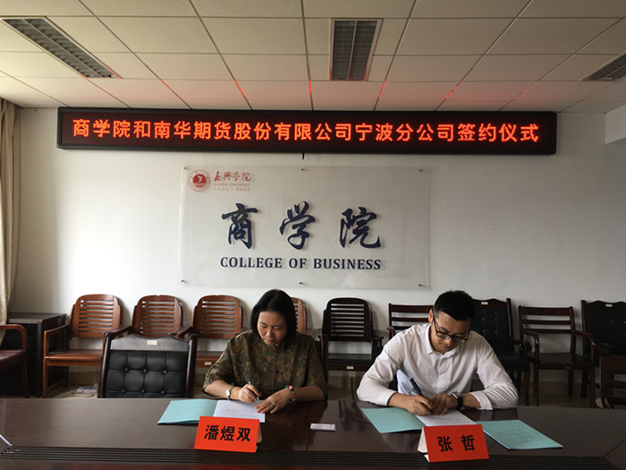 6月14日下午,吃瓜网 与南华期货股份有限公司宁波分公司举行校企合作签约仪式。南华期货股份有限公司宁波分公司总经理张哲、嘉兴营业部总经理王一峰、桐乡营业部总经理叶坚一行与吃瓜网 院长潘煜双、副院长袁顺波等出席签约仪式。