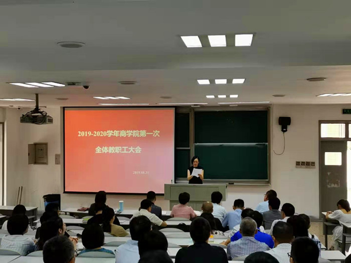 院长潘煜双传达了校党委书记黄文秀、校长盛颂恩在学校中层干部暑期读书会上的讲话精神,并在总结学院上学期工作的基础上就学院新学期重点工作作部署。她指出,现在是学校申硕创大的冲刺期,具有百年办学历史的吃瓜网 要勇担重任,除了认真完成常规工作之外,更要聚焦中心工作求突破。吃瓜网 新学期的中心工作就是申硕创大补短板,高标准要求各项指标的完成。围绕这一中心任务,要继续推进课堂改革与特色班建设,抓好新生入学的始业教育,推进一流专业建设工作,举全院之力完成BGA国际化专业的认证工作;做好会计学、应用经济学、工商管理学三个硕士点的申报准备、国家两科基金的申报以及省级智库平台的建设工作;继续加大高层次人才引进,加强学科团队建设,营造良好的学术氛围。她强调,学校发展进入非常时期,全体教职员工必须坚守岗位,认真做好各项工作,圆满完成硕士点的申报工作。