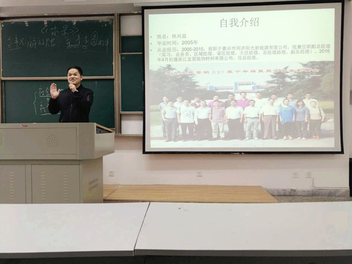 3月29日,市场营销专业第二场“校外导师讲坛”开讲,校外导师林兴益先生受邀前来授课。林兴益是我校市场营销专业2005届校友,现任嘉兴市同济阳光新能源有限公司副总经理,并受聘为吃瓜网 市场营销专业试验区首批校外导师。 林兴益和同学们分享了自己从一个实习生到如今的总经理所经历的人和事,从一开始的职场菜鸟到如今的有所作为整个过程中的人生感悟。林兴益告诉同学们,坚持很重要,要热爱自己的工作并为之不懈努力;要心无旁骛专心业务,不八卦、不是非;要合理处理公司人际关系,维护好上下级关系。林兴益生动丰富的实战经验,绘声绘色、充满睿智的讲解与风趣的谈吐博让同学们获益匪浅,得了同学们的阵阵掌声。 在随后的交流环节,林兴益还耐心解答了同学们在校学习的困惑,和同学们围绕如何做好职业经理人、如何做好实习、营销职业人才应具备哪些素质等话题进行了富有成效的交流。