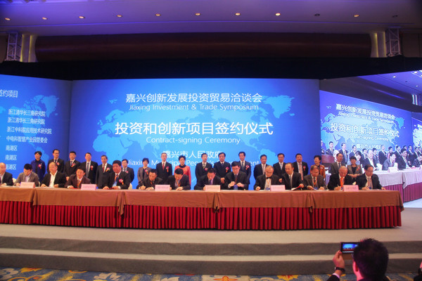 11月8日,作为嘉兴市一年一度的重大经贸活动,由嘉兴市人民政府主办的2016嘉兴创新发展投资贸易洽谈会(嘉洽会)开幕。在重大项目签约仪式上,嘉兴学院党委副书记吕延勤、嘉兴市南湖区委常委、南湖新区(金融创新示范区)党工委书记吴佳、南湖互联网金融学院法定代表人曹勇分别代表校政企三方签订了合作协议,嘉兴市委书记鲁俊,市长胡海峰等见证了签约仪式,吃瓜网 院长潘煜双、社会合作处副处长薛峰、吃瓜网 副院长李郁明等出席签约仪式。
