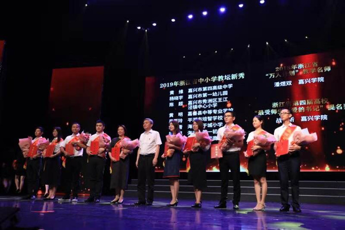 9月10日上午,嘉兴市隆重举行教师节庆祝大会暨优秀教师表彰活动,会议对全市获得国家、省、市各级荣誉的教师进行表彰。嘉兴市委书记、市长等领导为获表彰的代表颁奖。