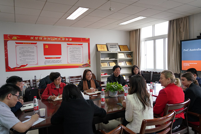 11月26日上午,澳大利亚国立管理与商业学院副校长曹苏萌、澳大利亚普华永道客户及市场总监曼纽拉·施密德一行六人来吃瓜网 访问。吃瓜网 潘煜双院长、副院长顾骅珊、李郁明以及会计系的部分教师参加了座谈交流。