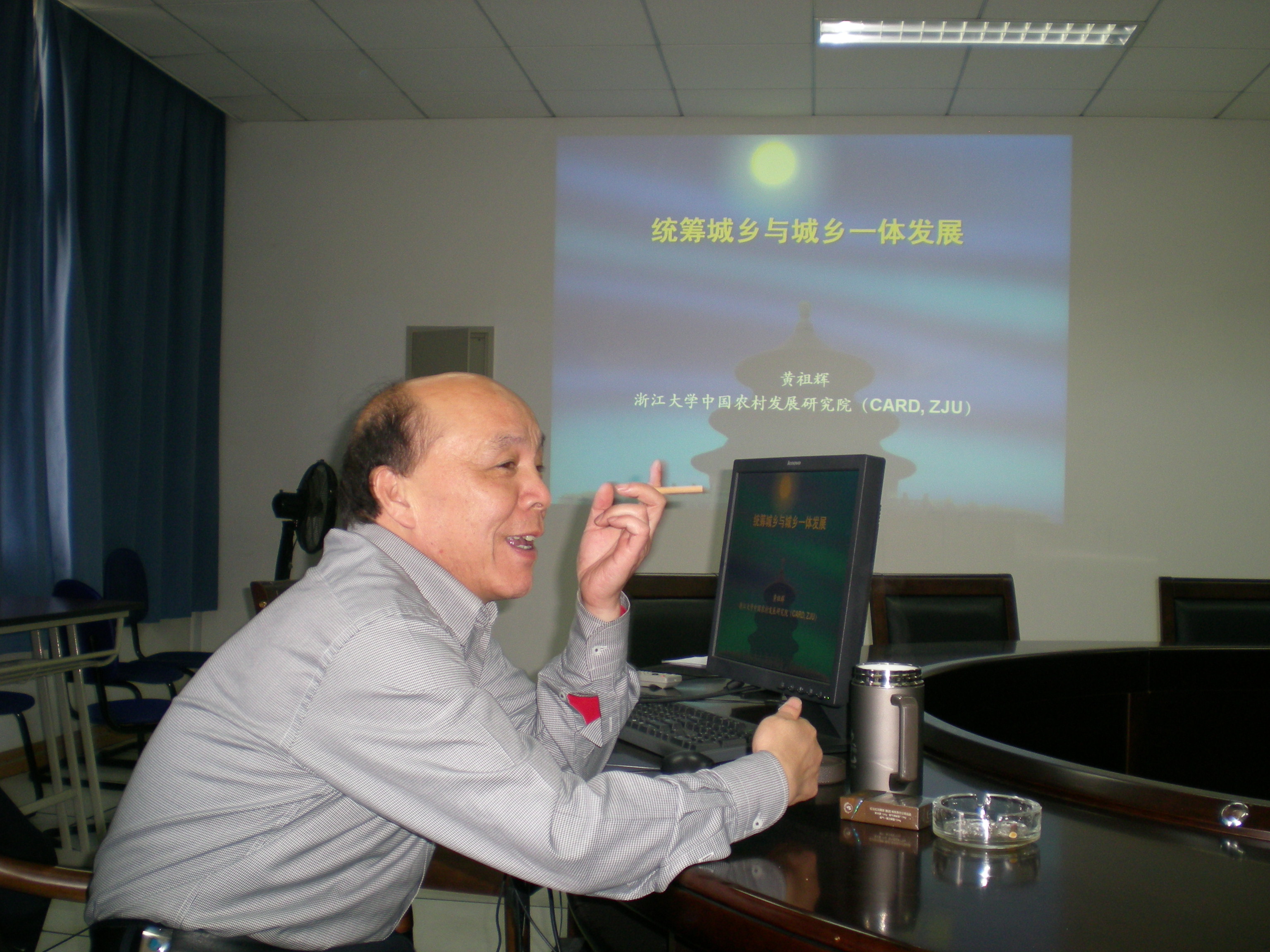 2012年4月10日,嘉兴学院长三角城乡统筹发展研究中心“双周论坛”第四次学术会议在经管中心三楼会议室举行,本次会议由中心执行主任钱方明教授主持,浙江大学CARD中心主任黄祖辉教授做关于“城乡统筹与城乡一体发展”的学术报告,并与参加会议的教授、博士等20多位教师进行了深入而广泛的交流。