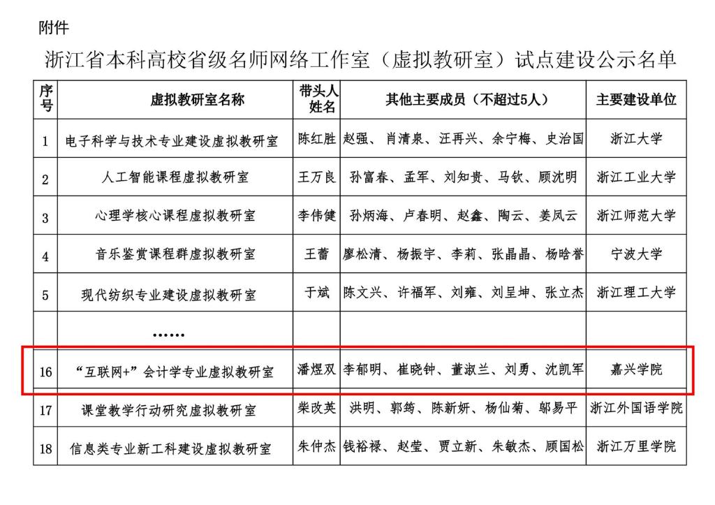 近日,浙江省教育厅公布了浙江省本科高校省级名师网络工作室(虚拟教研室)试点建设名单,吃瓜网 “互联网+”会计学专业虚拟教研室入选首批省级虚拟教研室试点建设点。