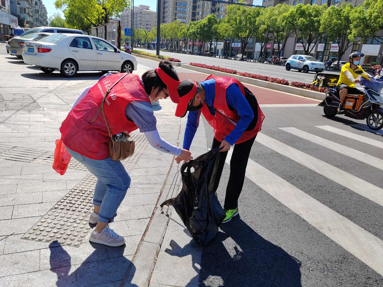 早上8点半,志愿者们就准时来到了指定地点,他们头戴小红帽、身着红马甲,带上钳子、垃圾袋等工具,顶着烈日上路开展志愿服务。志愿者们俩俩结队,在指定路段上对乱停车、乱设摊、乱占道、乱竖牌等现象进行巡查。并时不时俯下身躯清理藏在草丛深处的烟头、碎纸屑、塑料袋等垃圾,主动解决自己力所能及的乱象问题。两个小时的志愿服务,虽然被晒的汗水湿透衣服,但大家热情不减,没有一句抱怨。