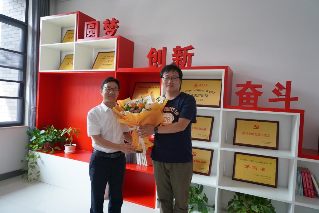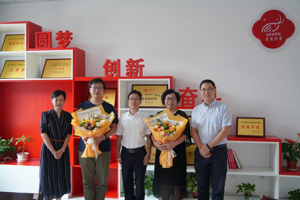 卢新波向学院一线教师代表胡桂兰老师送上节日的祝福,并对她从教几十年来兢兢业业、无私奉献,为学校和学院发展做出的贡献表示感谢,希望胡老师今后一如既往地关心和支持学校和学院发展,为年轻教师传授宝贵经验,为学校培养更多优秀人才。胡桂兰老师对学校和学院的关心、关爱表示感谢。她表示尽管即将退休,但立德树人的初心不变,将以饱满的热情坚守在教学岗位,尽自己最大努力做好工作。