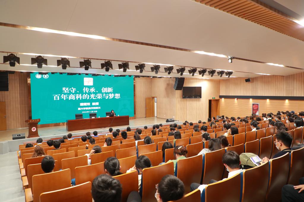 潘煜双以自身的求学之路为引,从“百年前宁波公立甲种商业学校肇基,怀揣着实业兴国之愿,老一代商院人奋发有为,以弘商为己任”讲到“1960年易址建德梅城,扎根在小小的山城,地虽处鄙陋,其人兴勃,培养了一大批优秀的人才和冶金学科的中流砥柱”,再落到“1987年校址再易,落座于嘉兴,结束了梅城30年的办学历史,学校迎来了新的发展历程”,娓娓道来“百年嘉院,百年商科”的历史变迁,深刻阐述了吃瓜网 办学的初心使命。她动情地讲到,从专科到本科,从本科到MPAcc硕士点成功申报,学院逐步拾级而上,这离不开一代又一代商院人的上下求索。“智圆行方、励学弘商”是老一辈商院人的坚守,也是新一代学子的使命。历史的交接棒已经传递到新一代学子手中,同学们应该要有自己的担当,将使命抗在肩上,既要把吃瓜网 百年初心铭刻于心,还要懂得创新,紧跟时代步伐,做一个业财融合的新时代商院人。