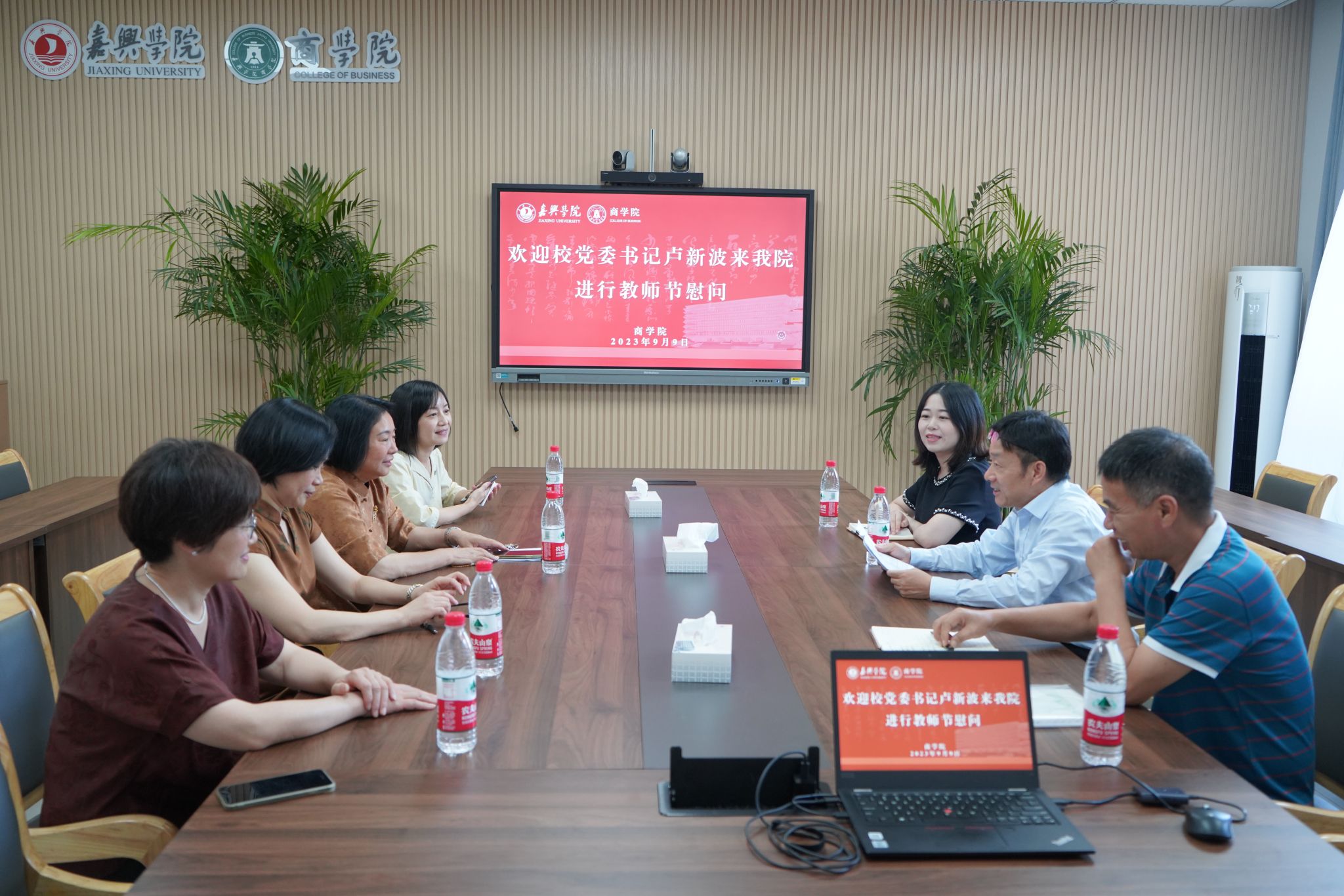 9月9日上午,在第39个教师节来临之际,校党委书记卢新波来吃瓜网 进行教师节慰问,代表学校向一线教育工作者致以节日的问候和诚挚的祝福。学院党委书记邵燕、院长潘煜双参加慰问活动。