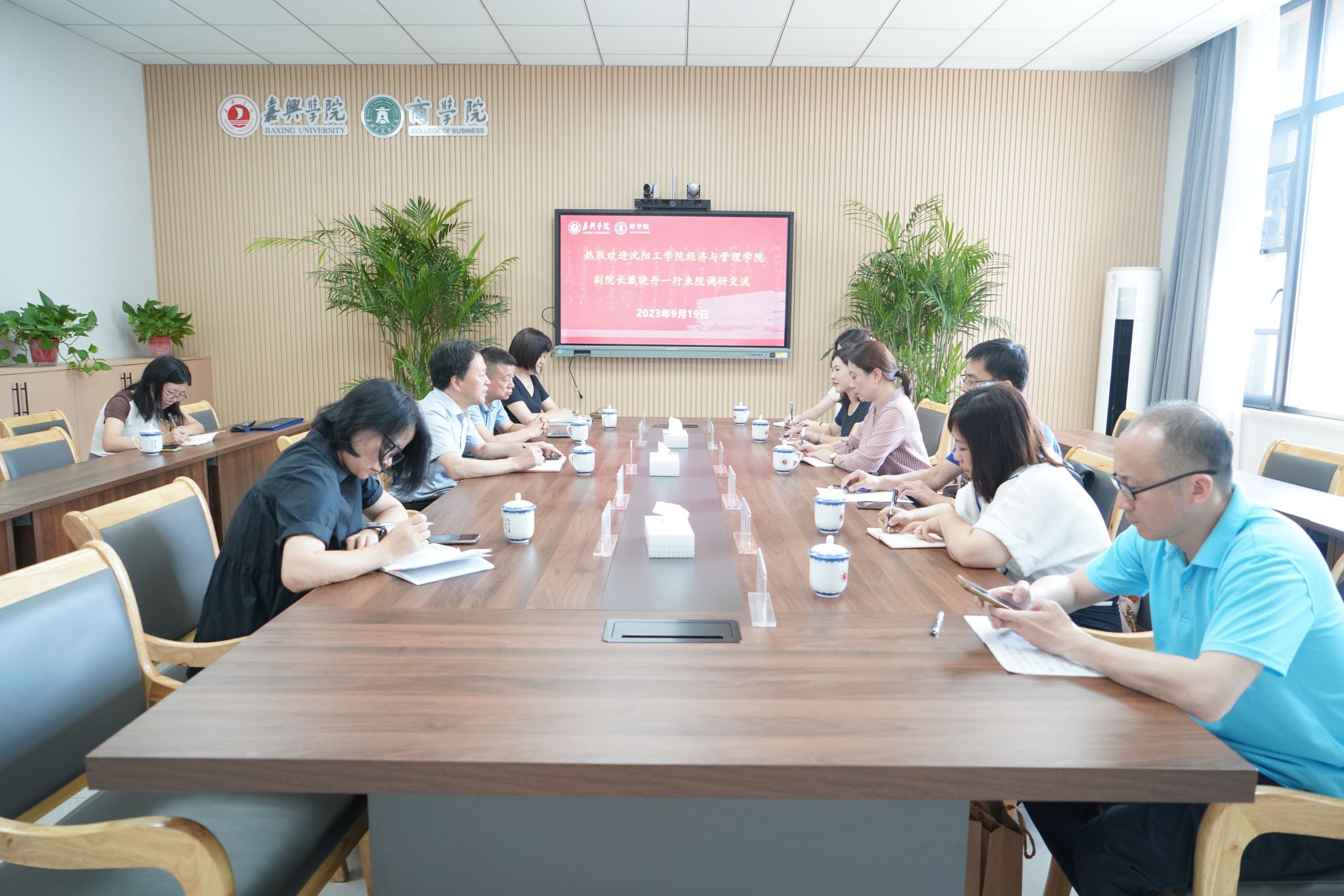 9月19日上午,沈阳工学院经济与管理学院副院长戴晓丹一行6人到吃瓜网 调研交流。吃瓜网 副院长李郁明,会计学、人力资源、市场营销专业负责人,经管中心副主任参加了交流会谈。
