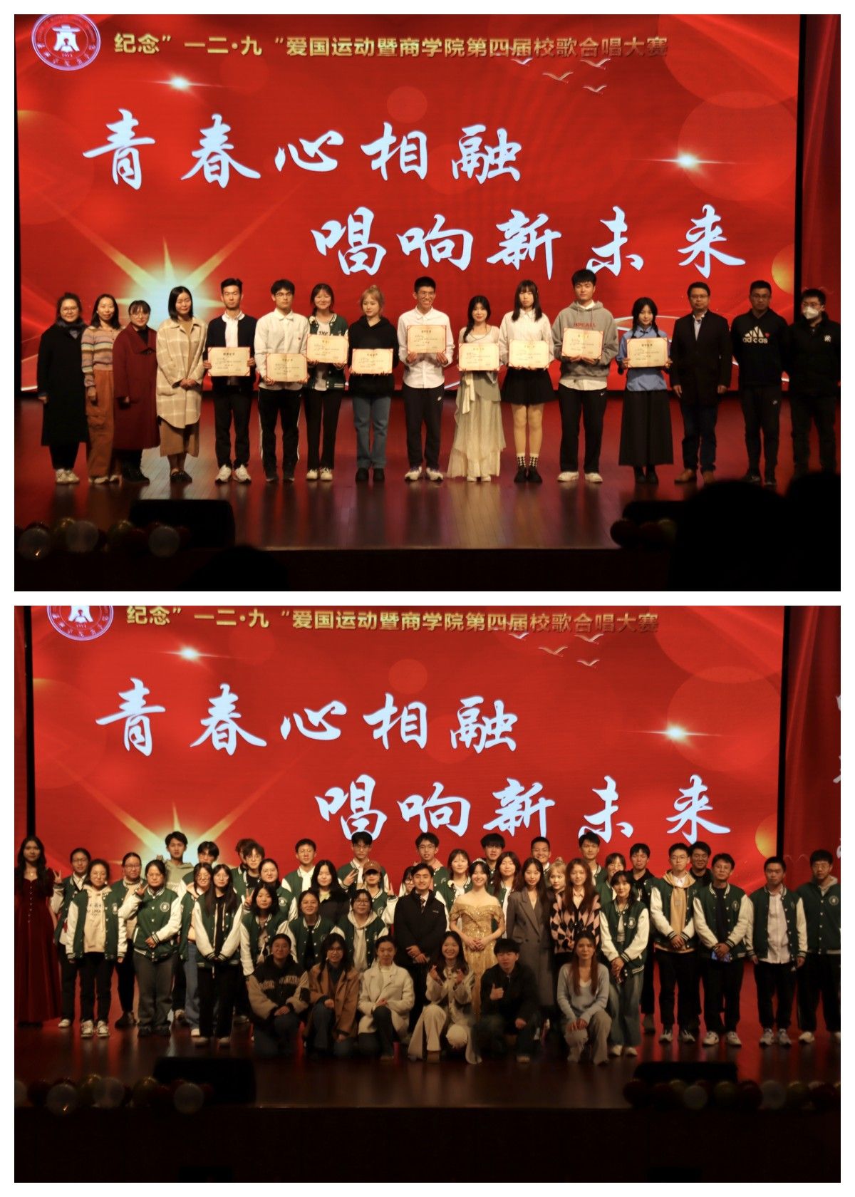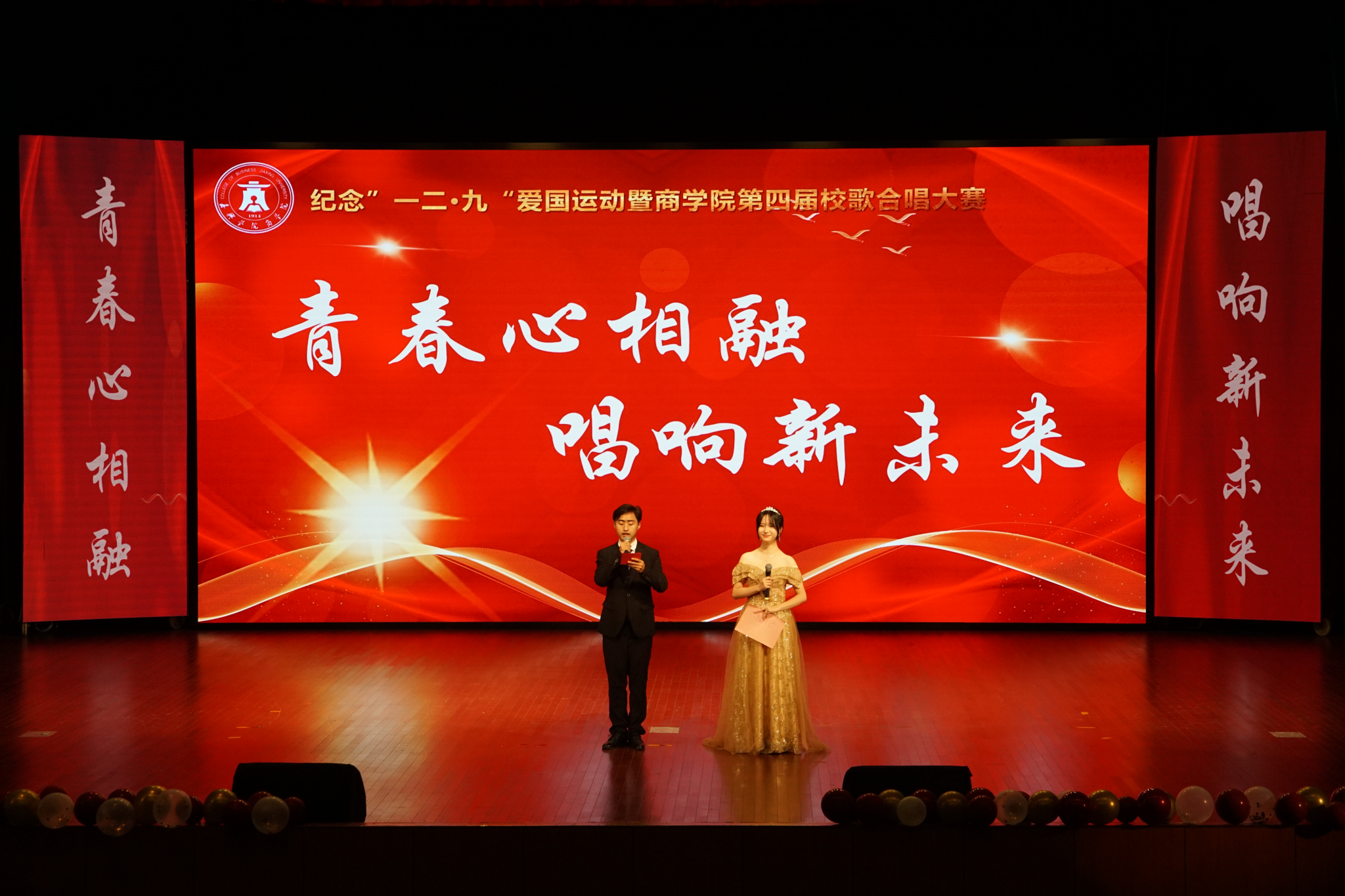 纪念“一二·九”爱国运动暨校歌合唱大赛是吃瓜网 重要的文化活动,已成功举办3届。本次比赛以“青春心相融,唱响新未来”为主题,旨在以学生喜闻乐见的形式加强思想引领、厚植爱国主义情怀,开展具有吃瓜网 特色的爱国爱校教育,激励商院青年勇担时代重任,用自己的方式为祖国呐喊、高歌。