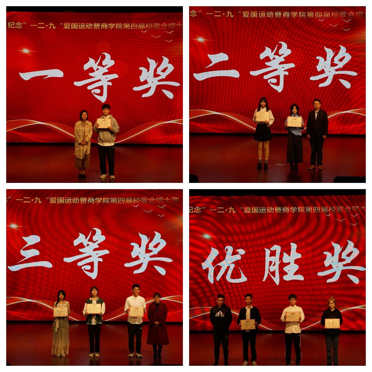 比赛全程,歌声如潮倾泻,余音绕梁,经久不息。各班饱含热情的演绎和高昂的歌声为观众呈上了一场绝妙的视听盛宴。最终,会计232班凭借精彩的表演获得本次比赛一等奖,人力231班、人力232班获得二等奖,营销231班、财务231班、财务232班获得三等奖,会计231班、物流231班、信息231班获得优胜奖。