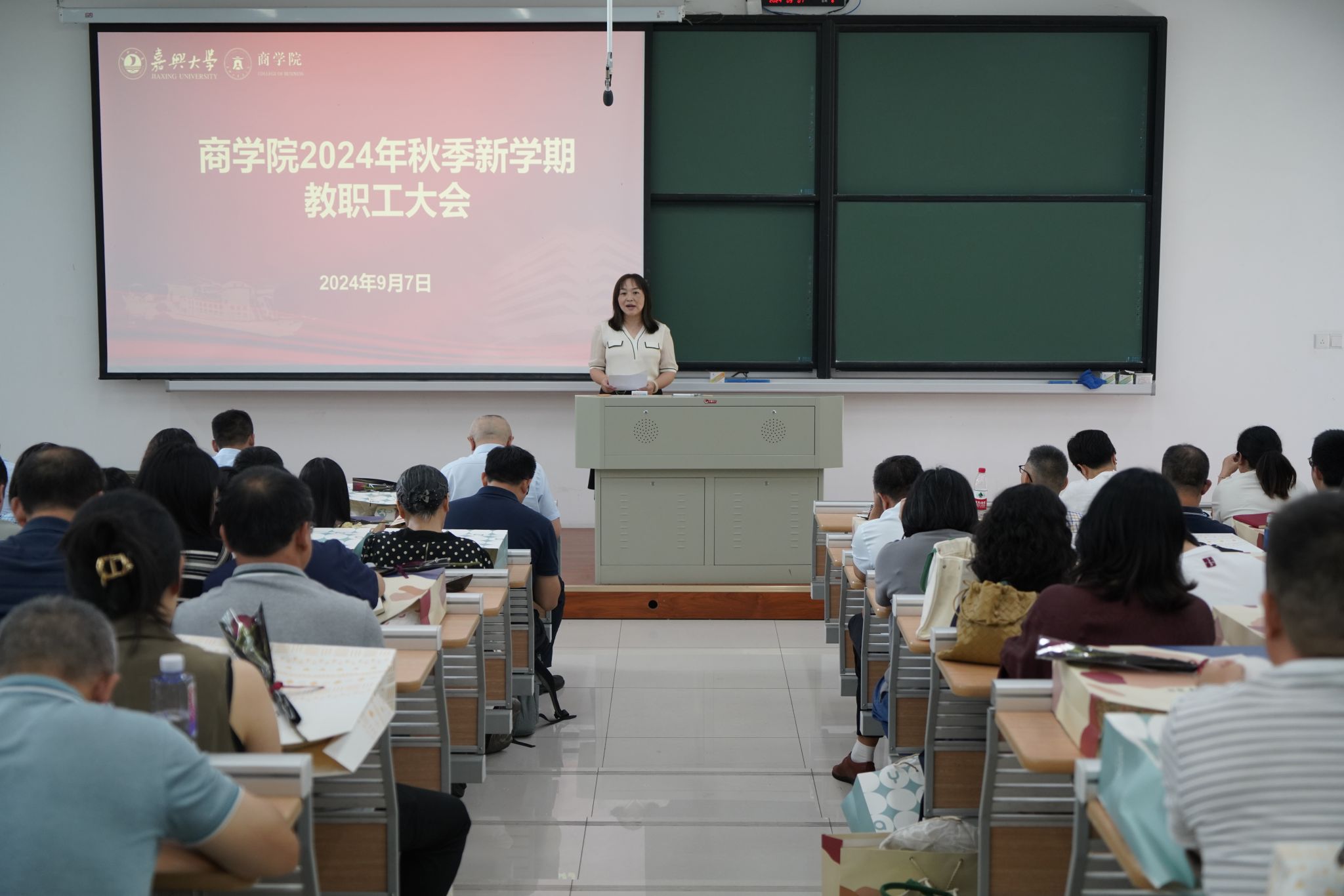 9月7日上午,吃瓜网 在明德楼140召开新学期全体教职工大会。会议由院党委书记虞岚主持。