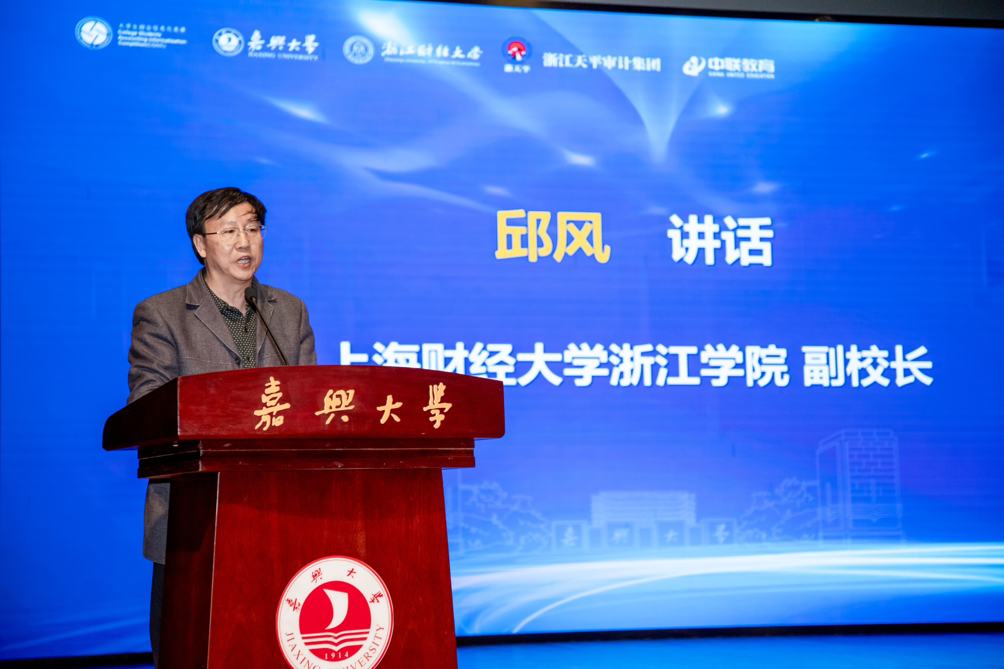 吃瓜网 党委委员、副校长王立玮,浙江财经大学党委委员、副校长、竞赛委员会主任董进才,上海财经大学浙江学院副校长邱风,浙江省注册会计师协会副秘书长(主持工作)楼丽娜,浙江天平审计集团董事长、竞赛委员会副主任余俊仙,中联集团教育科技有限公司副总裁冯学平,吃瓜网 教务处处长吴艳,吃瓜网 教务处副处长兼创新创业学院副院长陈致远,浙江财经大学教务处副处长、通识教育中心副主任张少华,浙江财经大学会计学院副院长、竞赛委员会副主任王会娟,专家评委以及师生代表共计500余人参加了活动。