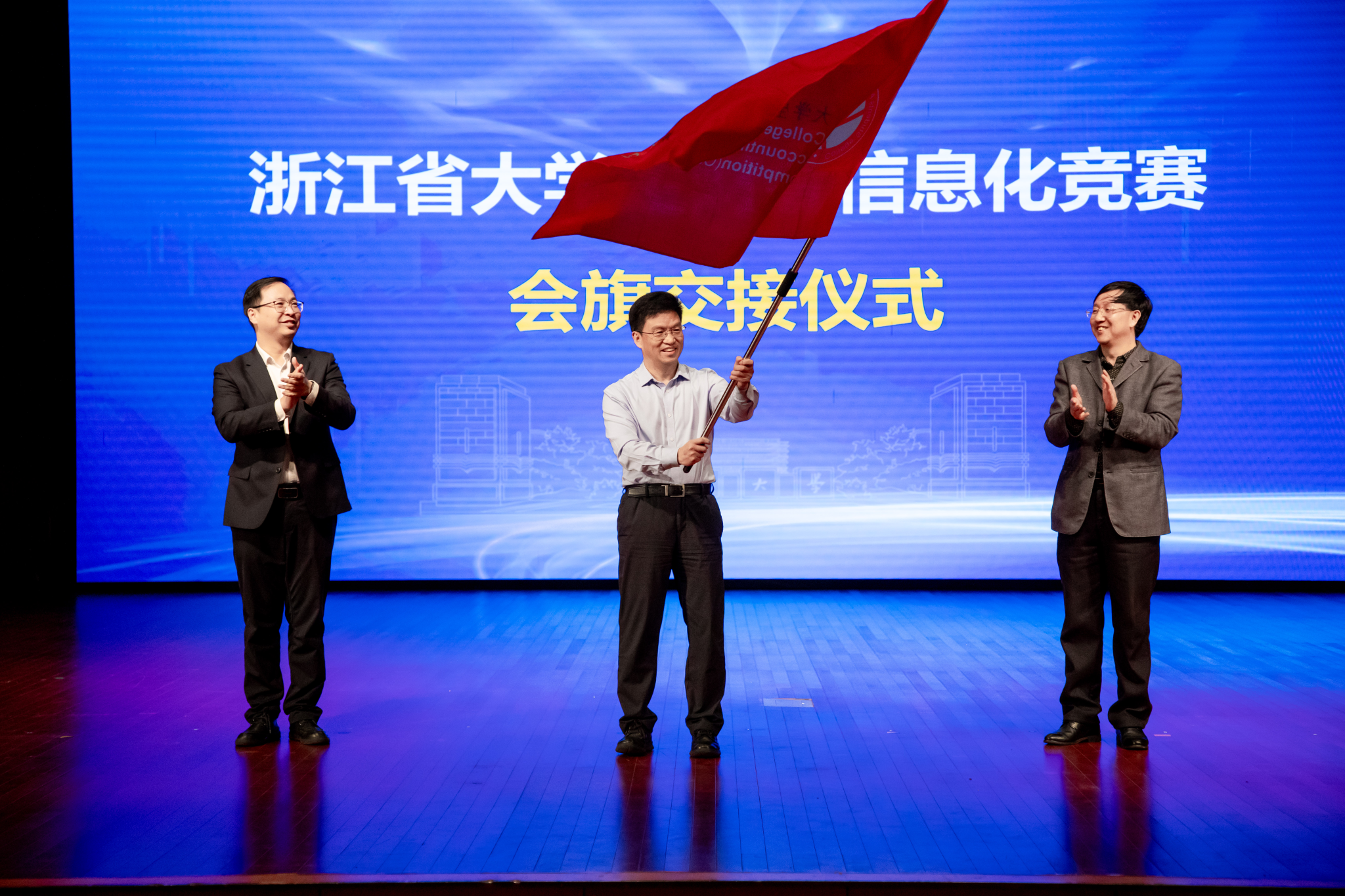闭幕式上还进行了会旗交接仪式,第二十二届竞赛承办单位上海财经大学浙江学院副校长邱风代表下届承办单位讲话,他代表上海财经大学浙江学院承诺将全力以赴筹备好下届竞赛,并诚挚邀请各位领导、老师和同学明年赴上海财经大学浙江学院参赛。