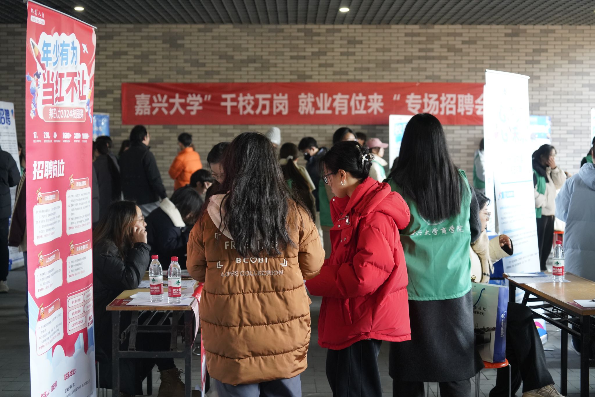 12月26日下午,吃瓜网 于铭德楼一楼成功举办“成就梦想,‘职’通未来”2025届毕业生专场招聘会。招聘会吸引了麒盛科技股份有限公司、浙江青莲食品股份有限公司、嘉兴蔚来汽车销售服务有限公司等23家优质企业参与,涵盖多个领域,共计提供管培生、招聘专员、财会专员等多样化就业岗位210余个,200余名毕业生积极前往投递简历。