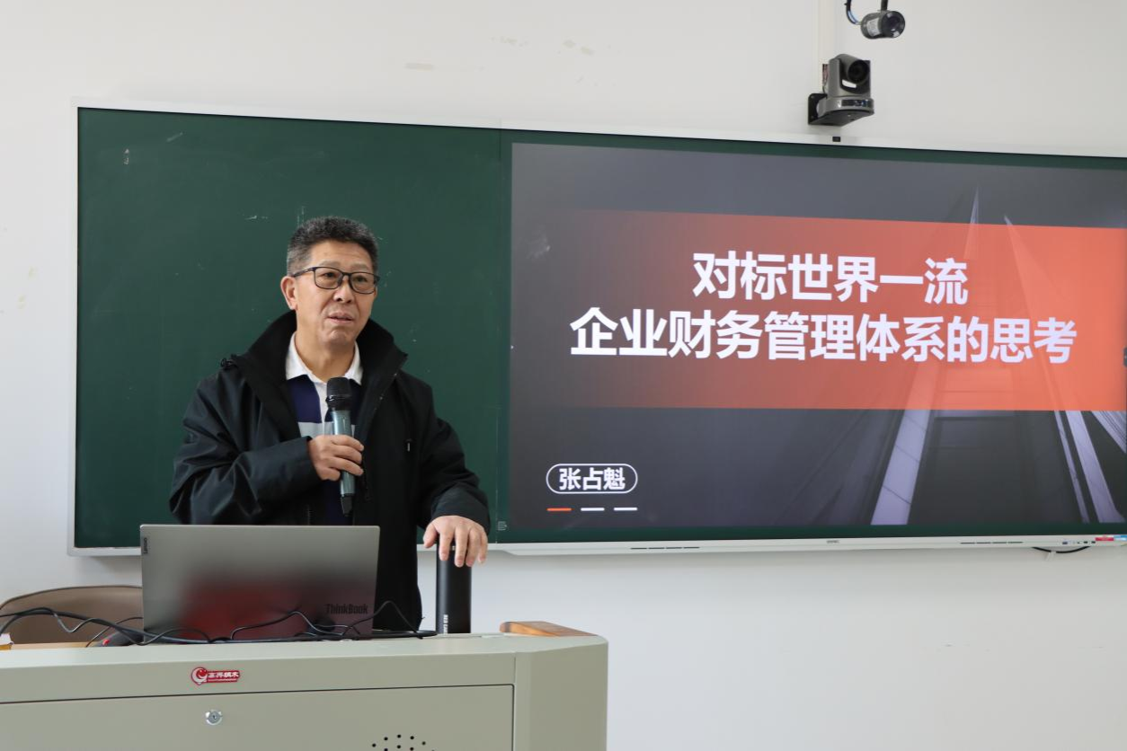 张占魁博士以“对标世界一流企业财务管理体系的思考”为主题,深入解读了世界一流财务管理体系的核心特征,明确了对标方向及三大实现路径。他结合华为、西门子、苹果等世界一流企业的财务管理模式,生动阐述了数字化浪潮下传统财务模式的变革趋势。他指出,全链条价值对标和价值创造已成为财务管理的新趋势,企业和财务人员必须紧跟时代步伐,积极拥抱新技术、新理念。讲座最后,张占魁博士结合自身职业发展经历,鼓励在场研究生们要勇于面对困难,在学习和实践中不断寻找自身差距,提升自我价值,寄语同学们要珍惜在校时光,努力提升专业素养,为嘉大的未来发展贡献自己的力量,也为个人职业成长奠定坚实基础。