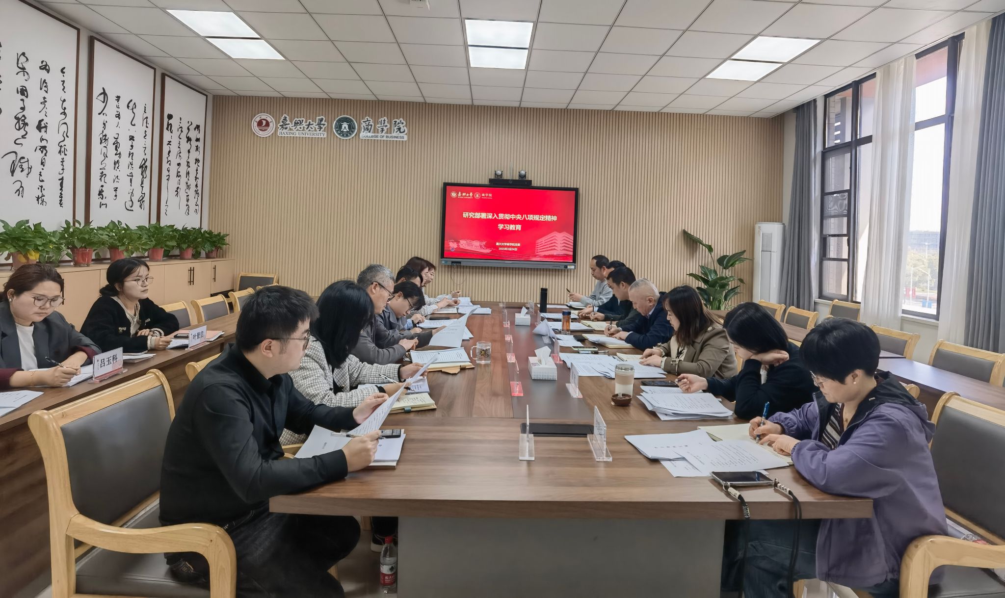 3月24日下午,学院召开党委理论学习中心组(扩大)会议,专题学习习近平总书记关于深入贯彻中央八项规定精神学习教育的重要讲话和重要指示精神,传达中央、省委、省教育厅党组关于学习教育相关会议精神,全面落实学校党委的工作部署,就学院深入贯彻中央八项规定精神学习教育展开研究与安排。学院党政班子成员、专职组织员和各党支部书记参会,会议由党委书记虞岚主持。