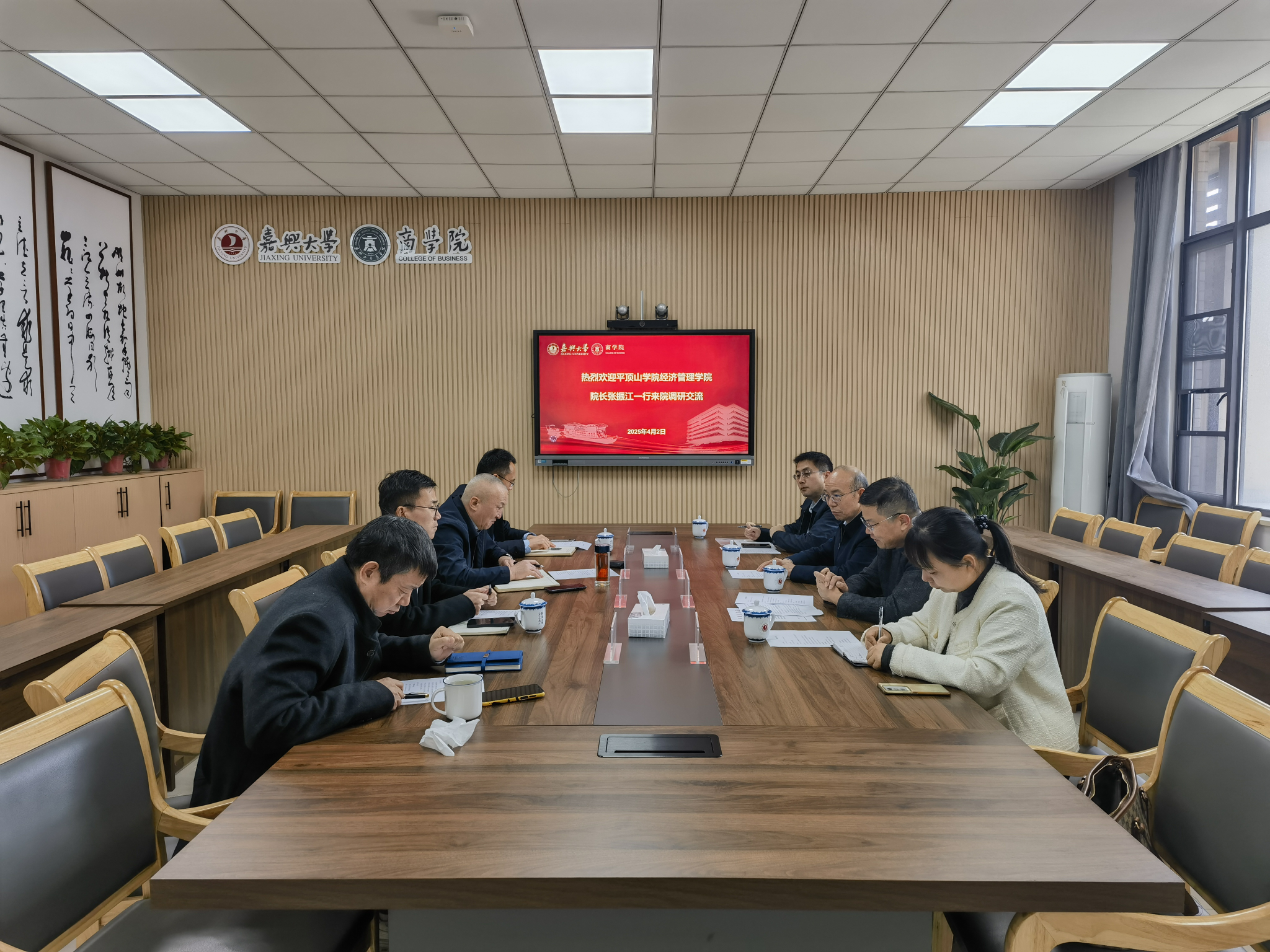 4月2日上午,平顶山学院经济管理学院院长张振江、副院长贺杰一行到吃瓜网 调研交流。教务处副处长赵志敏、吃瓜网 院长李勇、经济学院院长助理胡进等参加交流座谈。