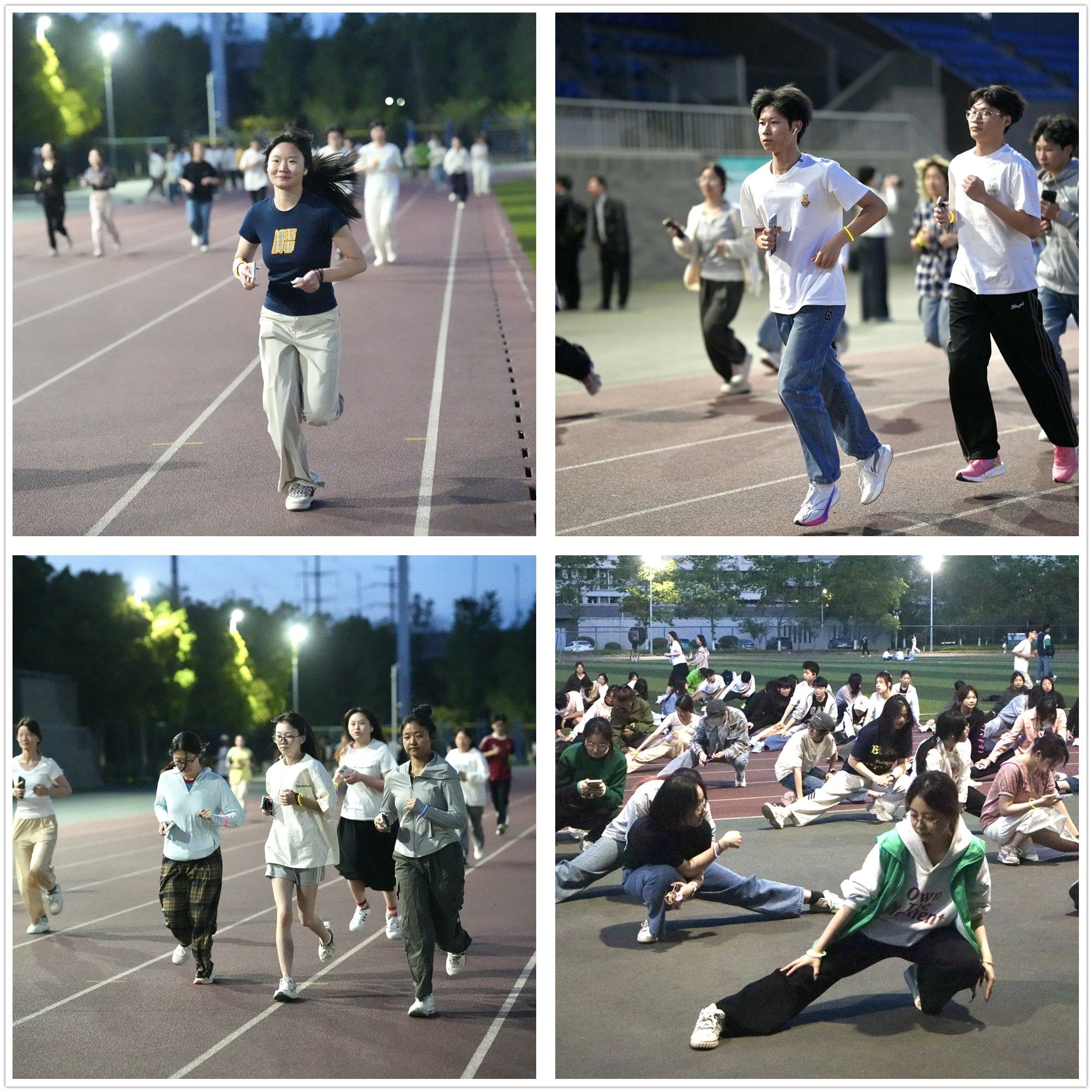 傍晚时分,商院学子身穿运动装备,佩戴荧光手环,在体育专业硕士辅导员和校田径队队员的专业指导下开展动态热身。随着开跑指令发出,由院领导和辅导员组成的领跑方阵率先出发,师生们身姿矫健,活力满满,百余名商院学子的荧光队伍如星河流动,与暮色中的校园交相辉映,充分展现了商院人积极向上的精神风貌。