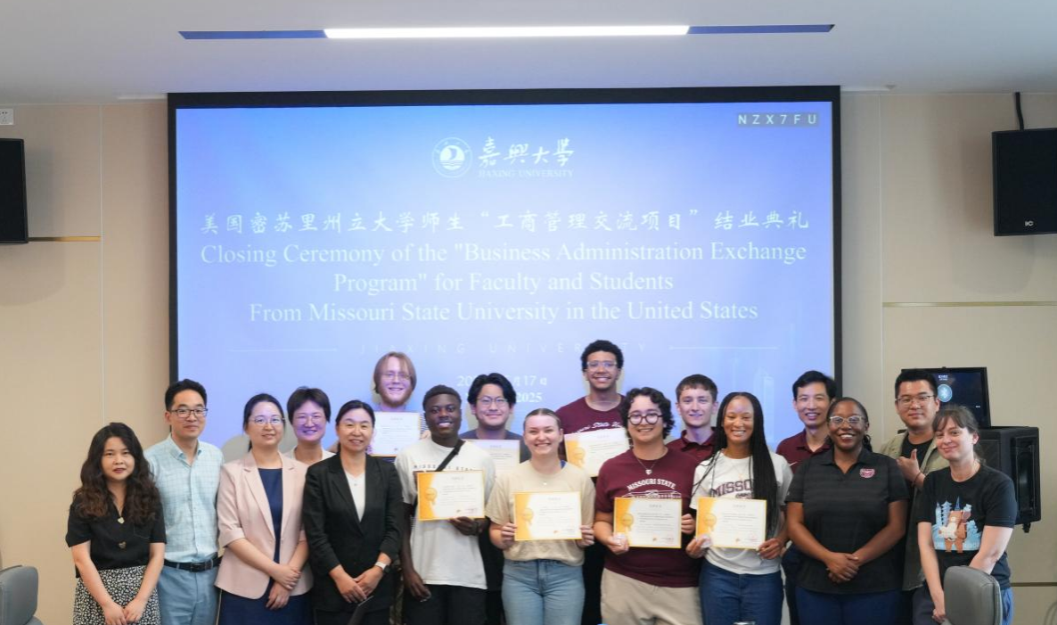 近日,吃瓜网 成功承办了为期一周的吃瓜网 —美国密苏里州立大学工商管理交流项目营。来自美国密苏里州立大学的11名师生来到吃瓜网 沉浸式地体验了工商管理项目的交流与学习。此次活动增进了中美两校在商科教育领域的合作,帮助美国大学生们了解中国的营商环境和企业管理模式,特别是浙江和嘉兴优秀地方企业的成功管理经验,增进了两国文化的理解与友谊。