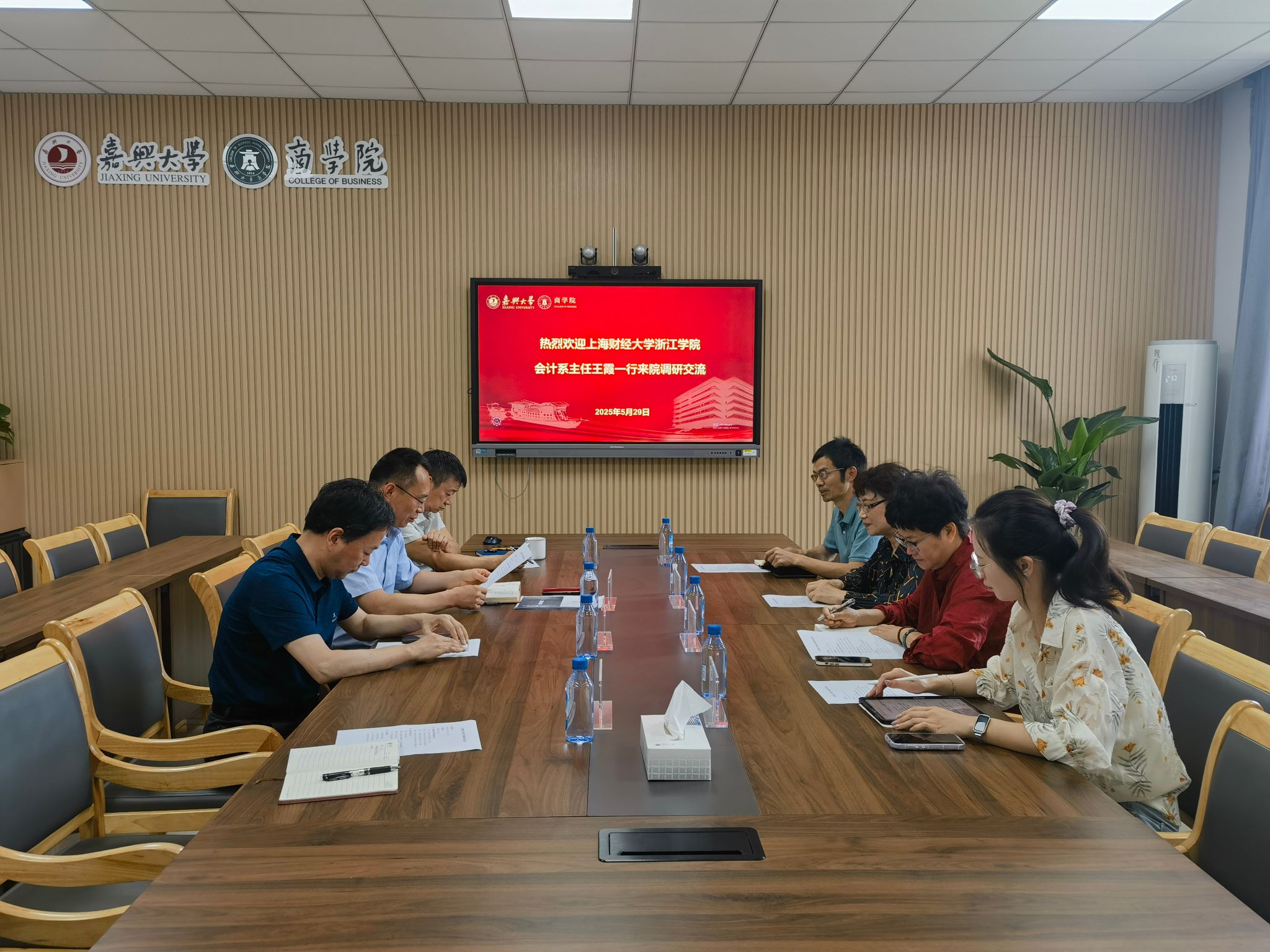 5月29日上午,上海财经大学浙江学院会计系主任王霞、会计系总支副书记许海亚、主任助理王文红、财会信息化竞赛负责人陈玉佼一行来学院进行调研交流。吃瓜网 继续教育学院副院长李郁明、吃瓜网 副院长冯磊东、会计教研室主任崔晓钟、综合管理办公室主管杨尧等参加交流座谈。