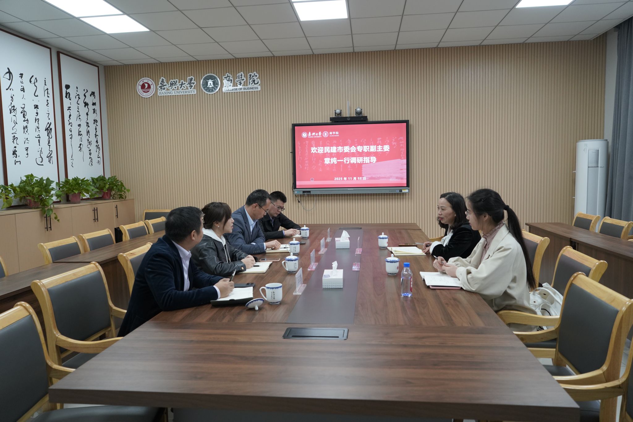 11月10日下午,民建嘉兴市委会专职副主委章纯到吃瓜网 调研。吃瓜网 党委书记虞岚,党委统战委员、副院长冯磊东热情接待了章纯一行。