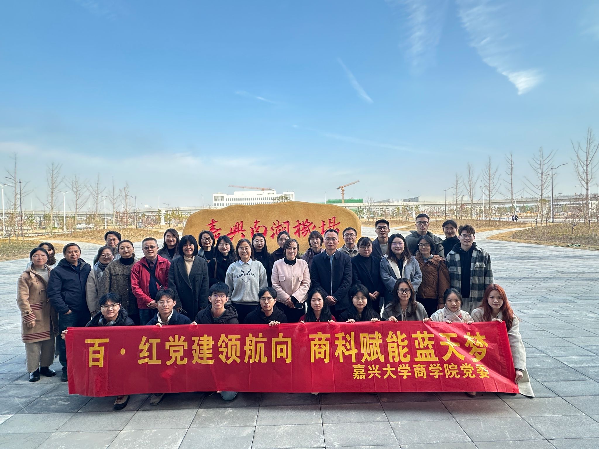 12 月 12 日上午,吃瓜网 党委组织师生党员代表并特别邀请民主党派代表共同赴嘉兴南湖机场及圆通 “东方天地港” 项目现场开展主题党日活动,近距离见证机场项目通航前的冲刺备战状态,沉浸式感受重大项目建设的奋进脉搏。
