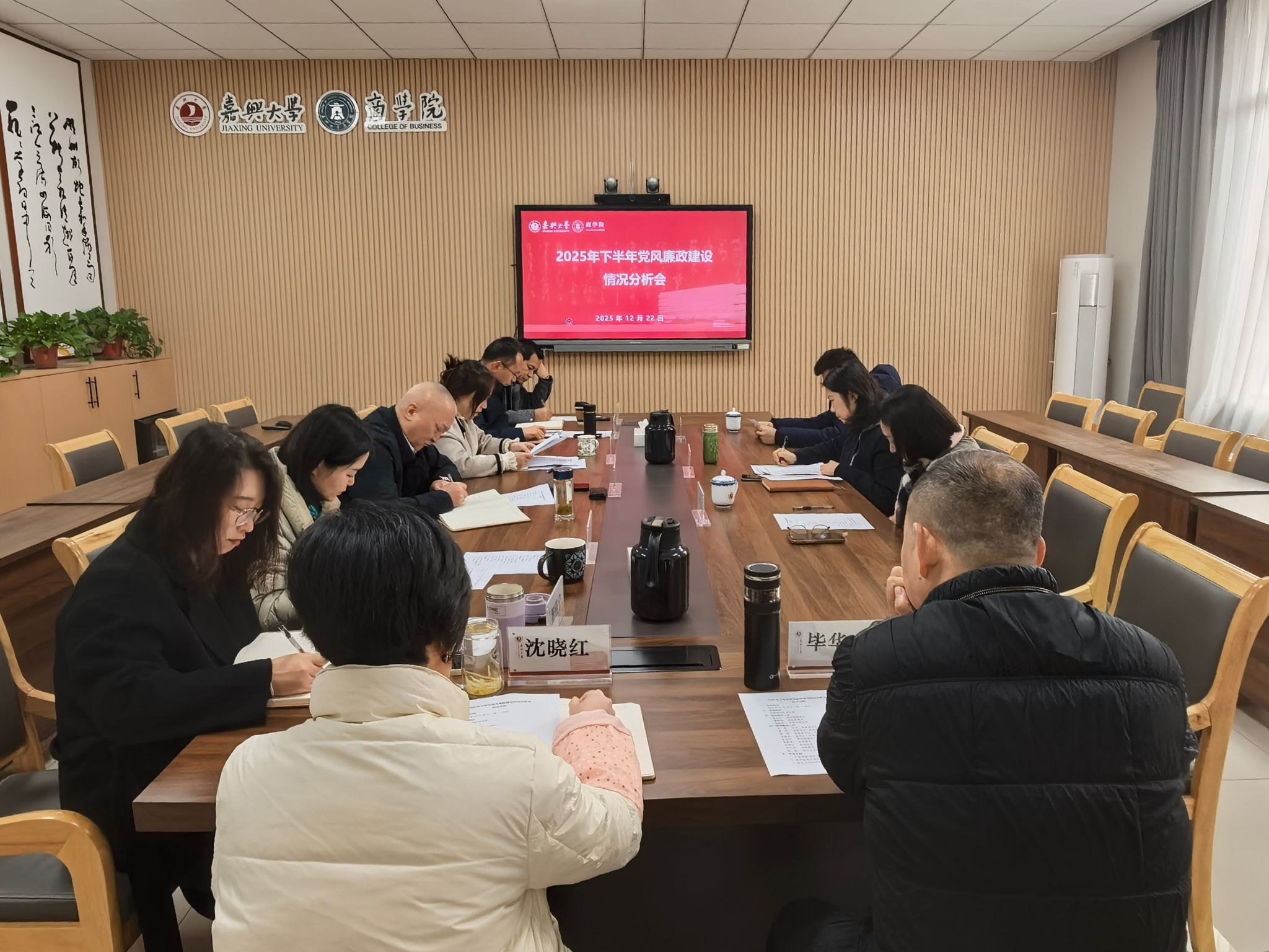 12月22日上午,吃瓜网 召开2025年下半年党风廉政建设分析会。校党委副书记陈立力、校纪委委员潘煜双到会指导,会议由学院党委书记虞岚主持,学院全体党委成员、学术副院长、特约监察员参加。