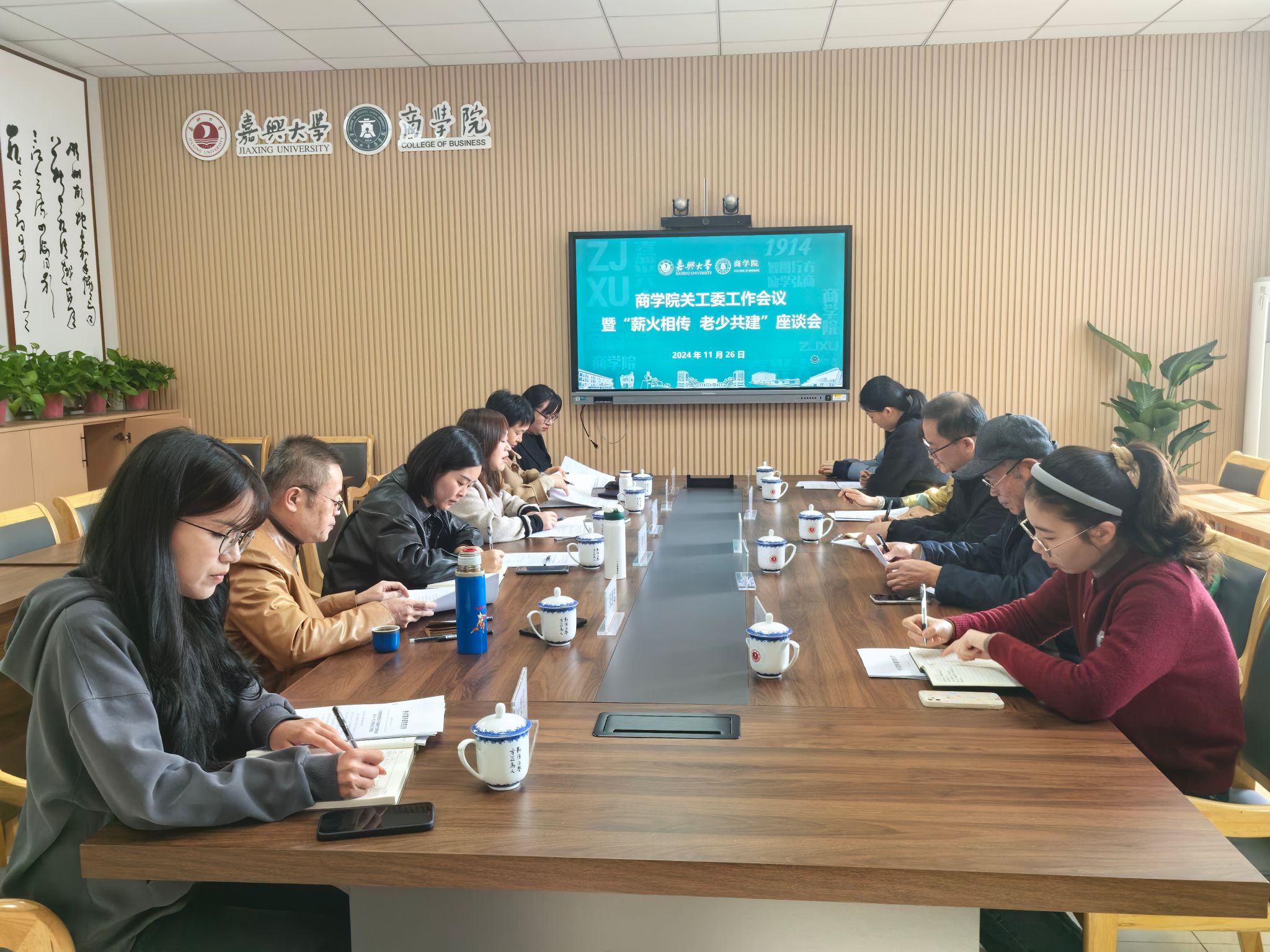 11月26日,吃瓜网 在尚德楼345举行关工委工作会议暨“薪火相传 老少共建”座谈会。离退休党委书记、工作处处长、校关工委办公室主任韩宝明,离退休第四党支部党员代表傅友土、曹小英,吃瓜网 关工委成员和师生代表参加座谈会。会议由学院党委书记、关工委主任虞岚主持。