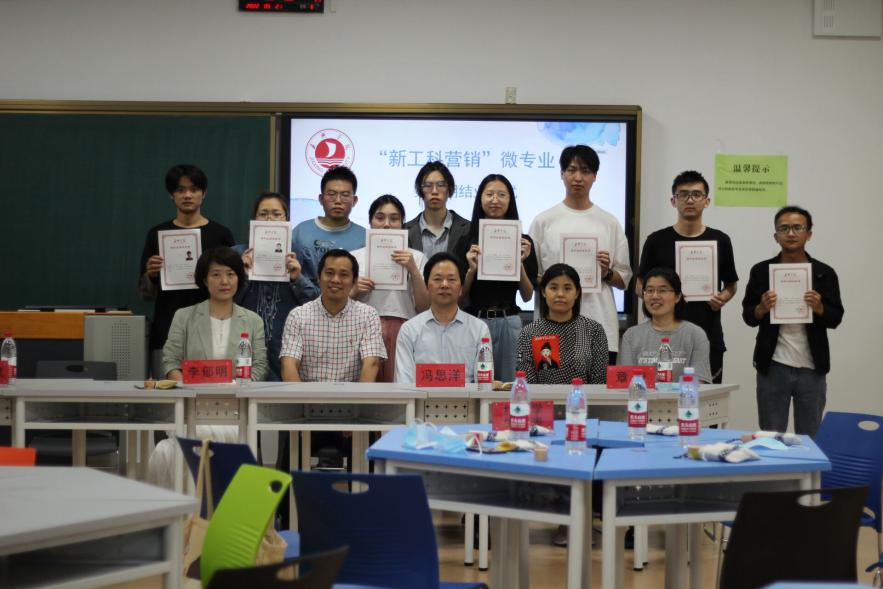 5月21日晚,首届“新工科营销”微专业结业证书授予仪式在梁林林校区一期兴礼楼210智慧教室举行。吃瓜网 副院长李郁明,校教务处教学建设科科长冯思洋,微专业授课团队教师翁胜斌、解淑青、章璇以及第一期结业学生代表和第二期学生代表出席活动。