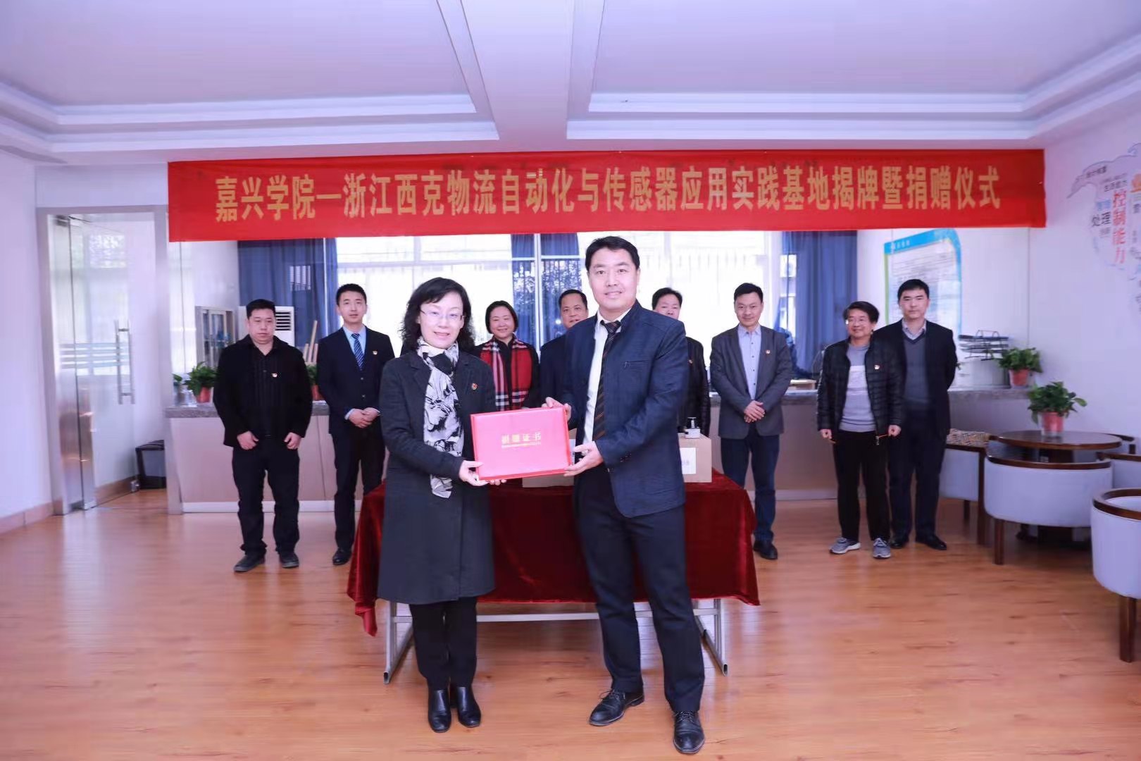 3月23日上午,嘉兴学院—浙江西克物流自动化与传感器应用实践基地揭牌暨捐赠仪式在嘉兴学院举行。副校长张琦、浙江西克传感器有限公司总经理高山、西克产品经理工程师傅琪、嘉兴市人民政府外事办公室党组书记、主任沈文平、嘉兴港区(综合保税区)管委会副主任孙悦、嘉兴综合保税区管理局局长殷健、嘉兴学院资产与实验室管理处副处长李启会、吃瓜网 院长潘煜双、副院长李郁明等出席仪式。仪式由潘煜双主持。