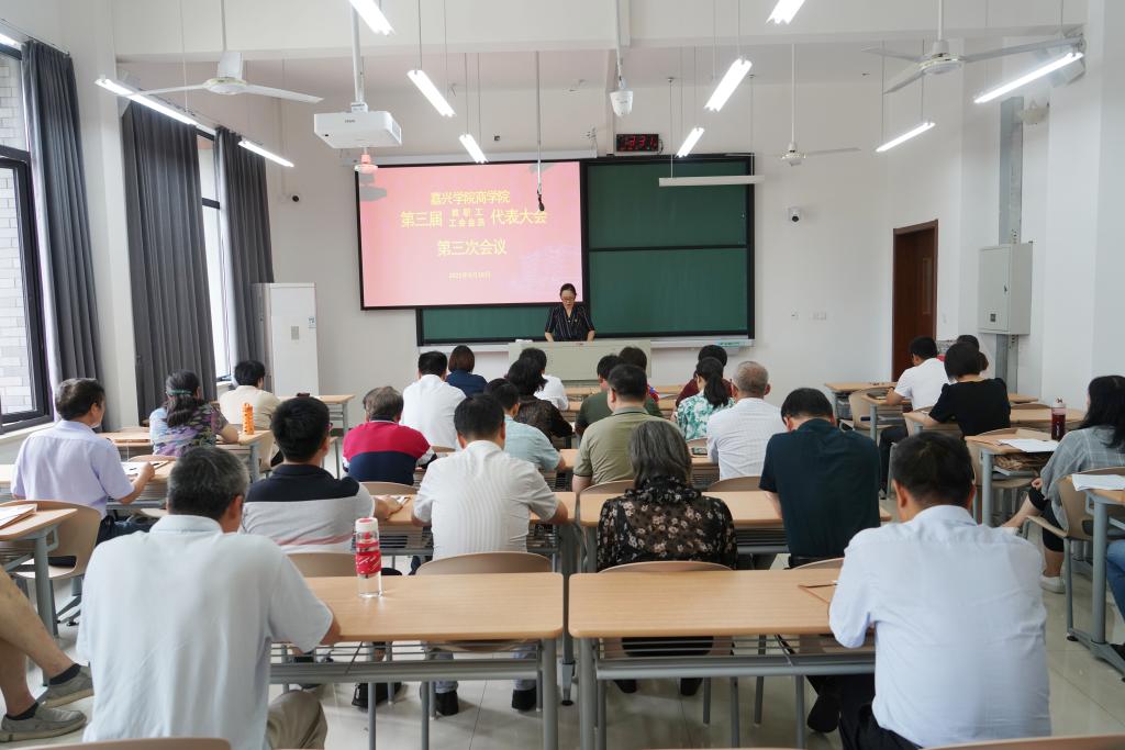 大会号召,全体教职员工高举习近平新时代中国特色社会主义思想伟大旗帜,立足“第二个百年”奋斗新起点,以守好“红色根脉”、办好人民满意的高等教育决心和信心,牢记使命、深化改革、接续奋斗,全面落实学校第四次党代会精神和“1358”发展战略,全力以赴建设特色鲜明,省内一流,国内知名的应用型高水平吃瓜网 ,为嘉兴市建设共同富裕示范区典范城市贡献智慧,为学校建设有特色、善创新的一流应用型综合性大学贡献吃瓜网 力量。