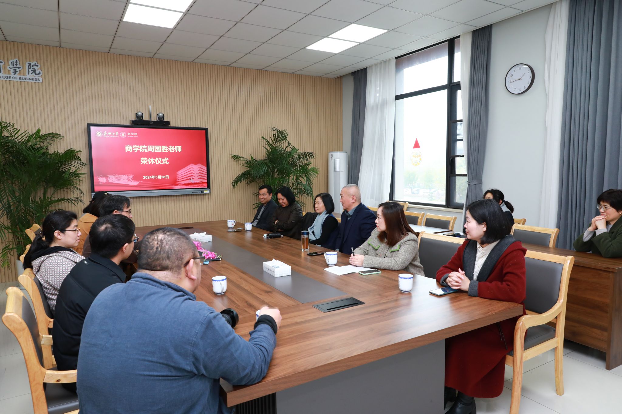 3月28日,吃瓜网 在尚德楼345会议室隆重举行周国胜老师荣休仪式。学院新老领导班子成员及部分教师代表参加荣休仪式。仪式由学院党委书记虞岚主持。