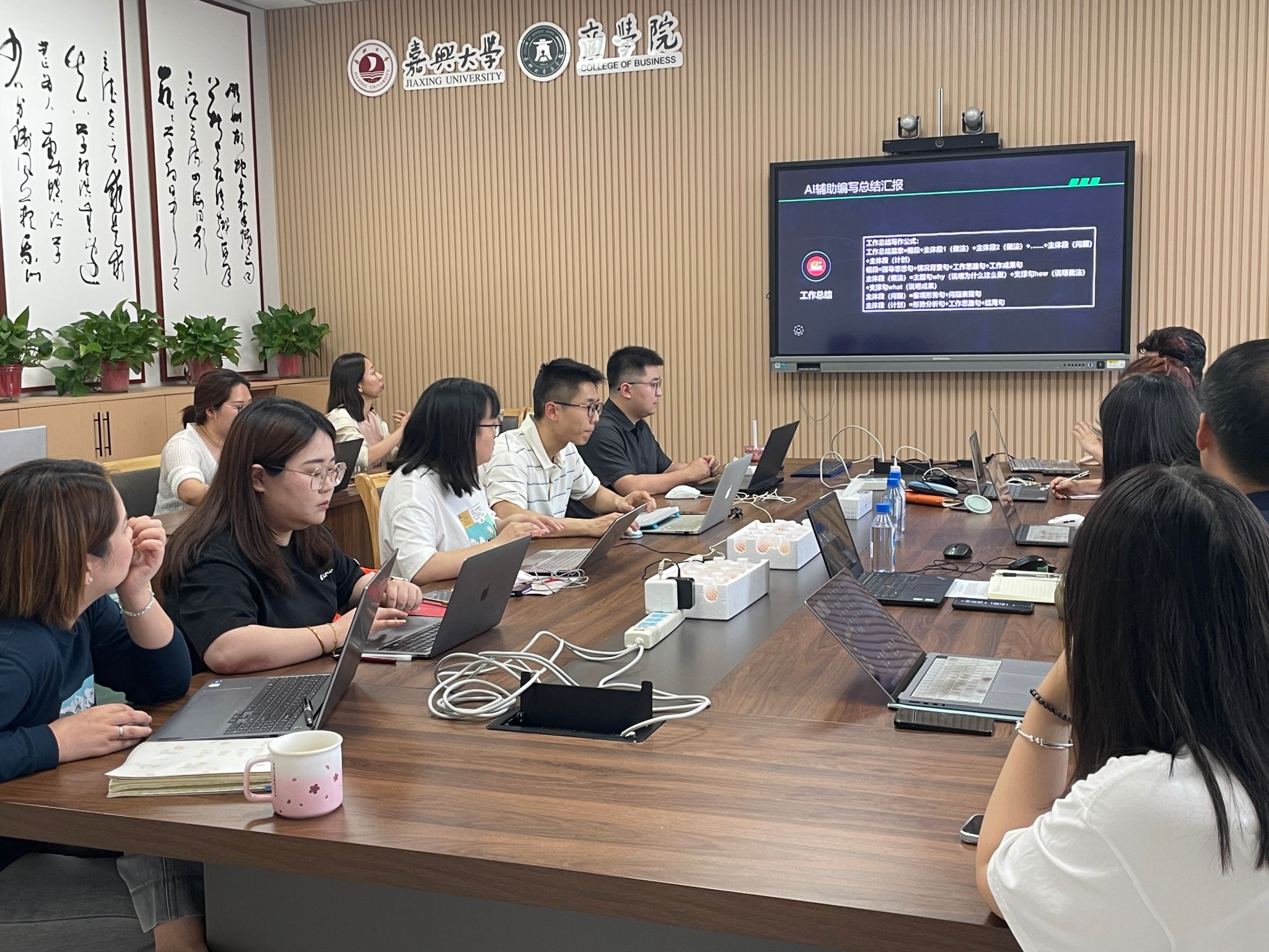 培训会上,张超从AI辅助编写总结汇报、AI辅助数据分析与PPT生成、就业辅导员智能体实超以及知识库、本地化部署与微调四个维度深入剖析了AI在学生工作中的应用场景与操作技巧。全体参训人员全程全神贯注,纷纷带上电脑,紧跟张老师的节奏进行实际操作练习。在培训过程中,大家积极提问、热烈讨论,现场气氛十分活跃。通过亲身体验,参训人员对AI在学生工作中的应用有了更深刻的认识和理解,纷纷表示收获颇丰。