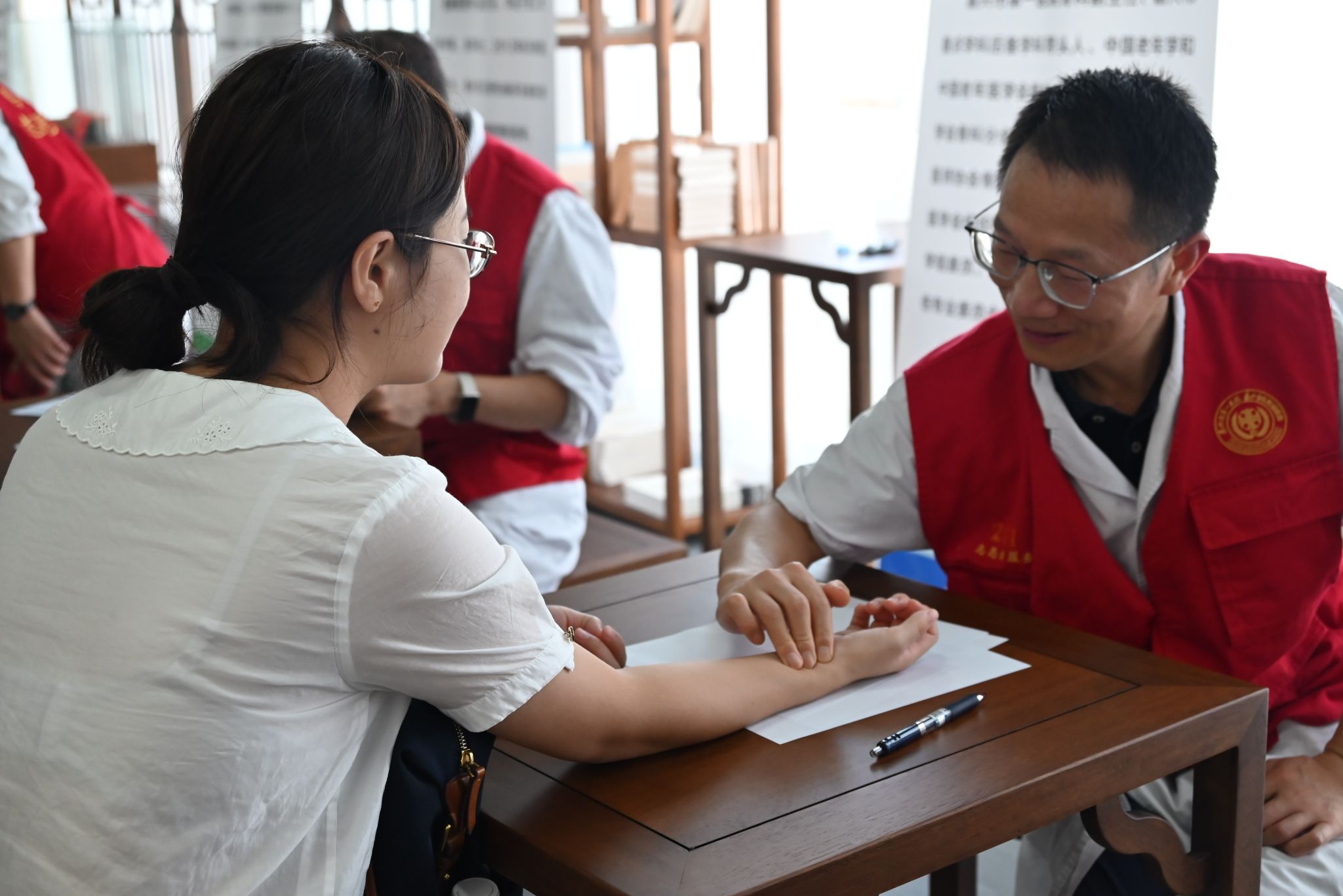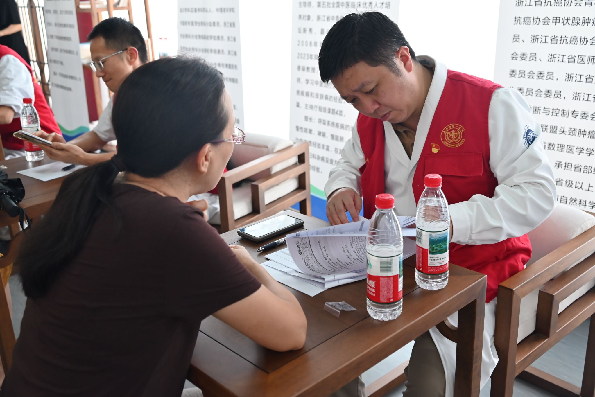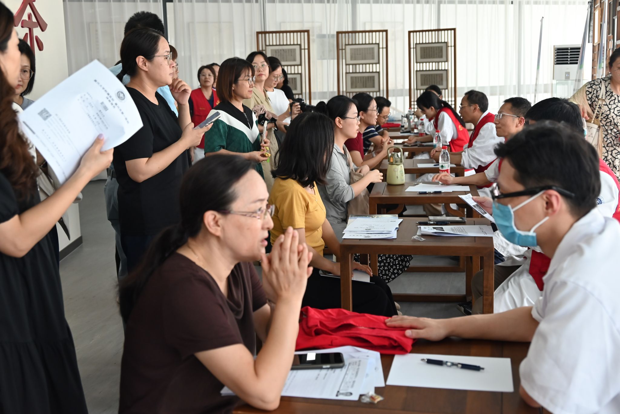 专题讲座结束后,现场诊疗环节正式开启。现场涵盖了中医科、内分泌科、心血管科、甲状腺科、眼科、骨科、疼痛科、健康管理等多个领域的专家团队坐诊,为教职工提供“一对一”免费诊疗服务。诊疗现场秩序井然,专家们凭借丰富的临床经验,细致为每位教职工问诊查体。参加活动的教职工们纷纷表示此次诊疗活动特别有意义,可以零距离和无障碍地咨询自身健康和诊疗问题,名医专家也解答地非常详细,并表达了希望学校工会能继续为老师们提供这类关怀教师健康的暖心活动的想法。