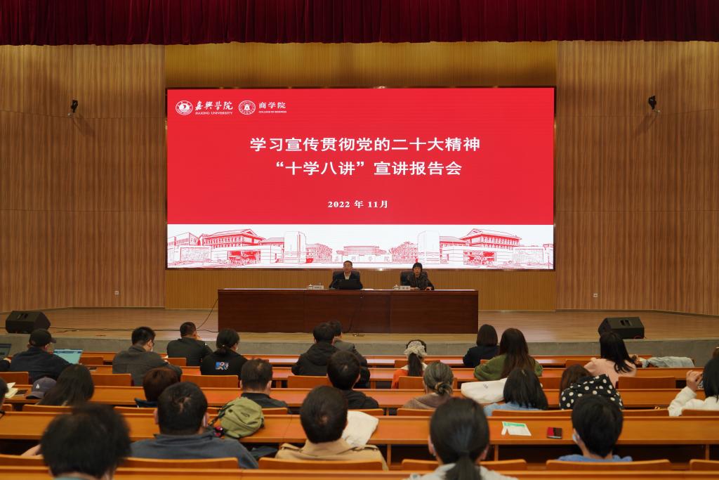 邵燕在总结时强调,要结合陈新友书记的宣讲报告和学院工作实际,按照党的二十大提出的总要求,切实增强办好人民满意的教育的政治自觉、情感自觉和行动自觉,牢牢抓住人才培养这个关键,确保教书育人、科研创新、社会服务等各项工作始终走在正确的道路上。要按照学校统一要求,围绕学院具体安排,高要求抓好党的二十大精神的文本学习,深入理解内涵,精准把握外延;高质量确保党的二十大精神有见于行,通过学习带动工作、取得实效。要继续发扬百年商科爱国兴邦的光荣传统,坚守立德树人根本,讲好“大道理”、争当“大先生”、潜心“大事业”,为一流应用型综合性大学建设作出吃瓜网 人应用的贡献。